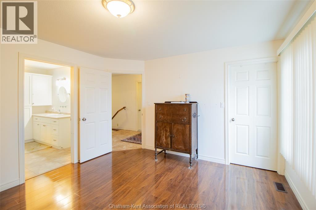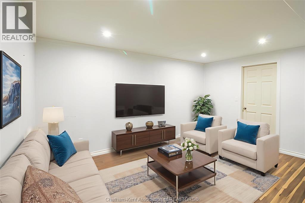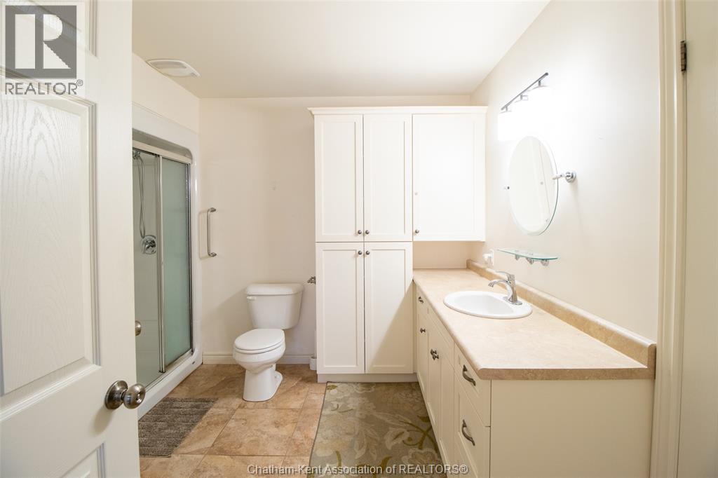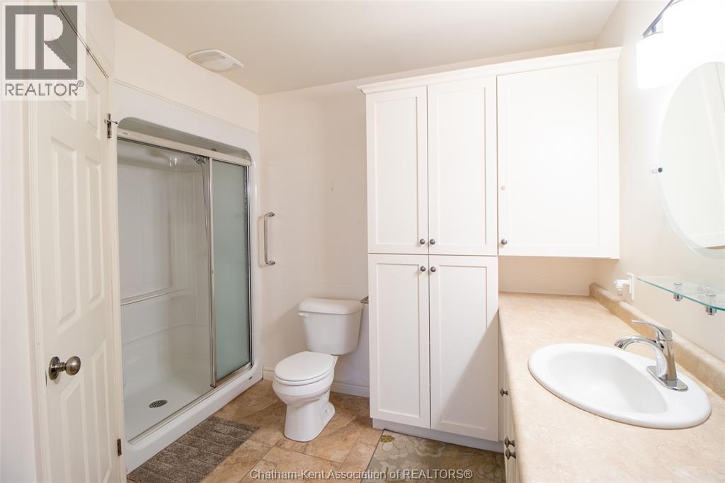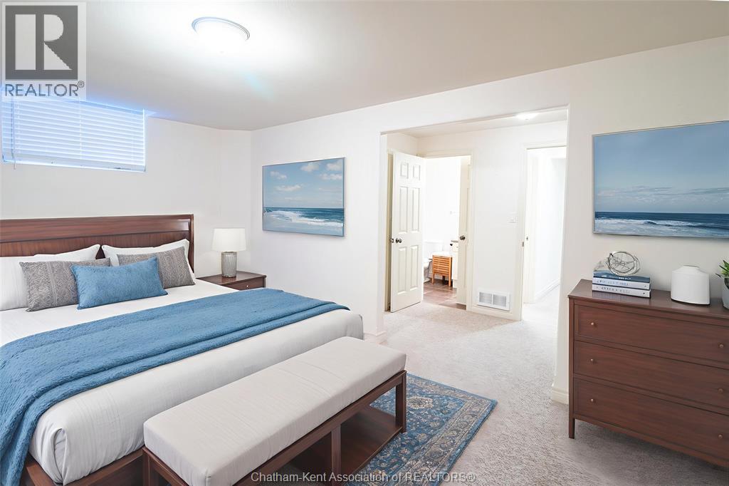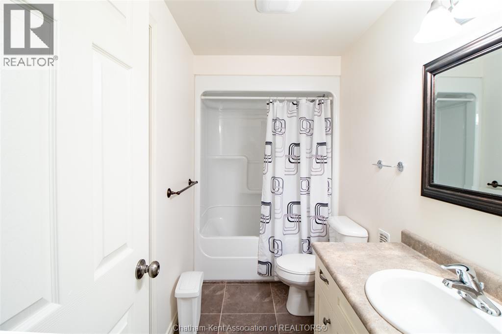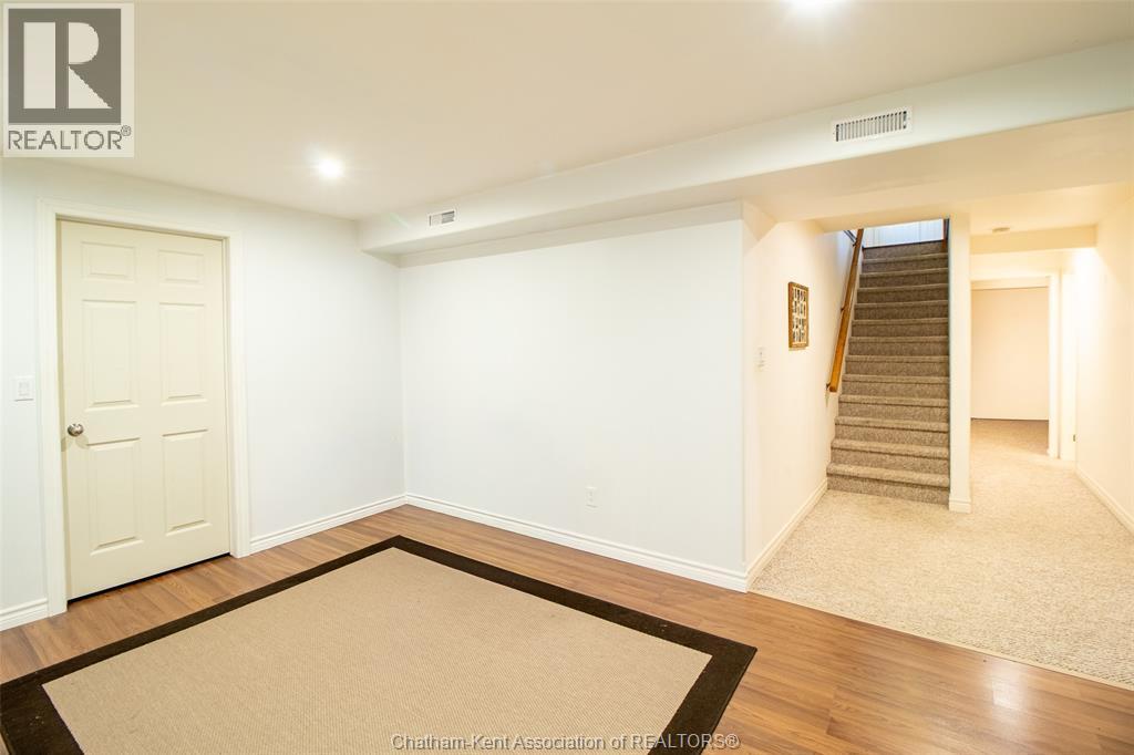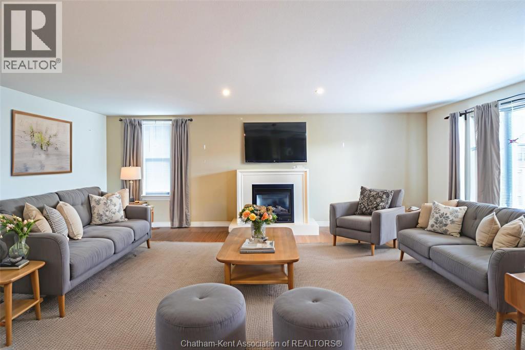 A deceptively spacious 1+2 bedroom, 2 bathroom bungalow semi in the Landings Subdivision. The main floor includes a primary bedroom with walk-in closet, cheater ensuite, main floor laundry, and an open concept living area with gas fireplace, dining space, and kitchen- great for entertaining. The lower level offers a family room, two good-sized bedrooms, and another cheater ensuite. Plenty of storage throughout. Outside features a single-car attached garage with extra room for storage or a workbench, plus a large partially covered deck and low maintenance landscaping. A great place to call home in a desirable neighbourhood on Chatham’s north end. (id:4555)