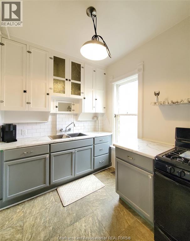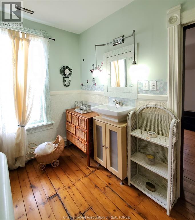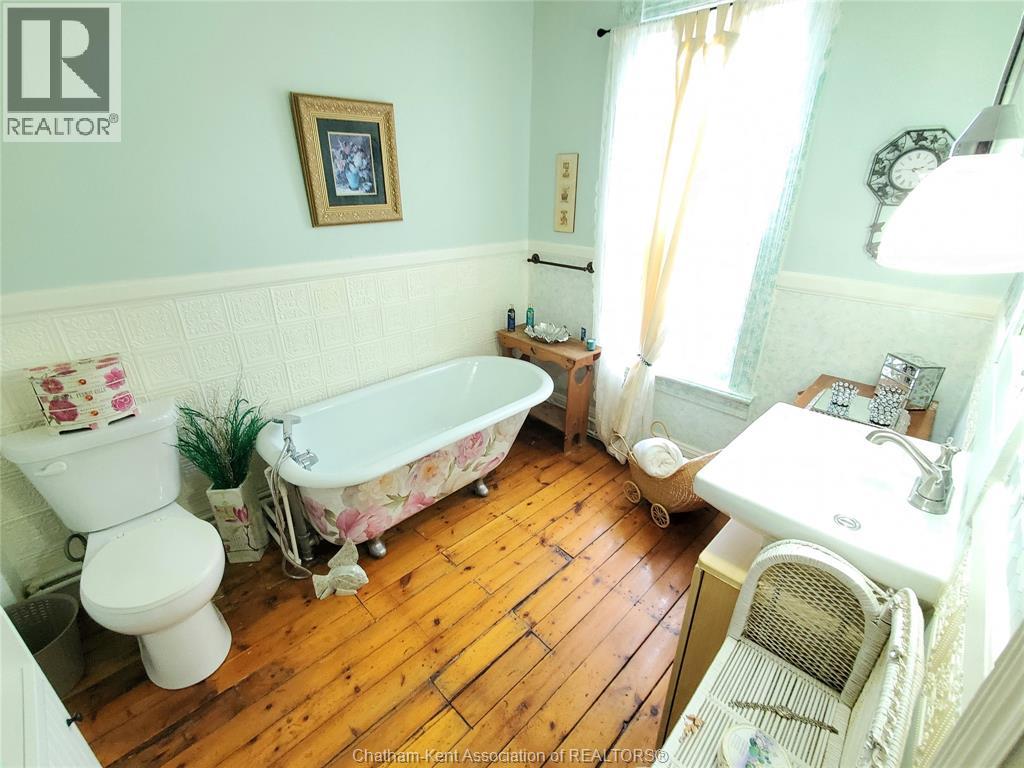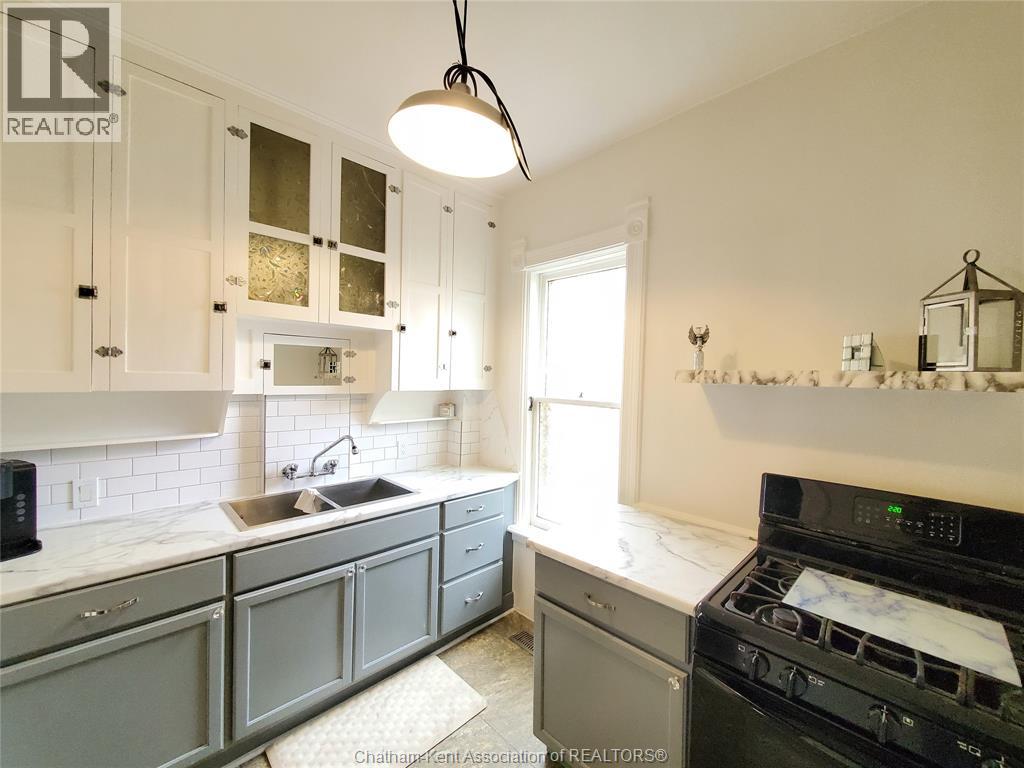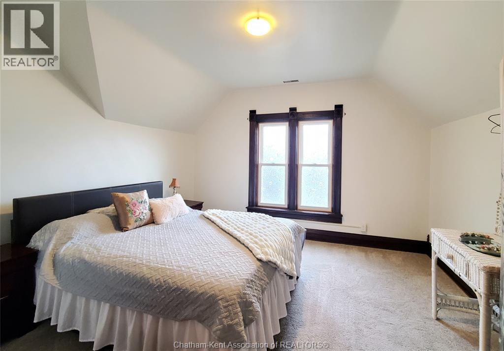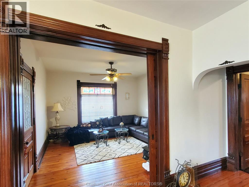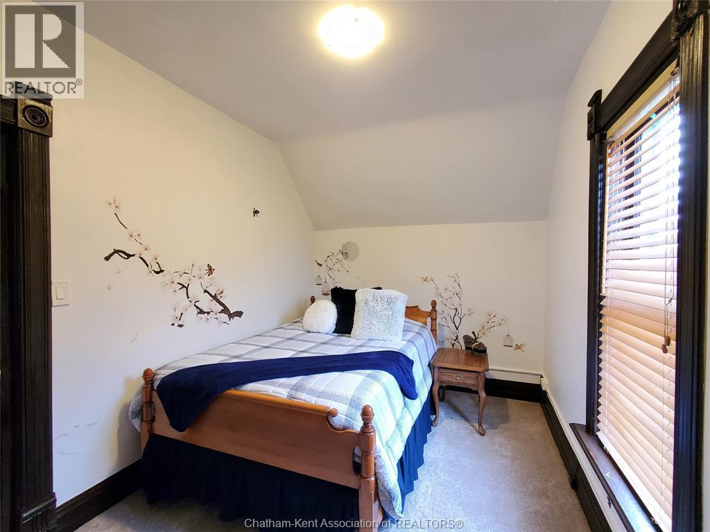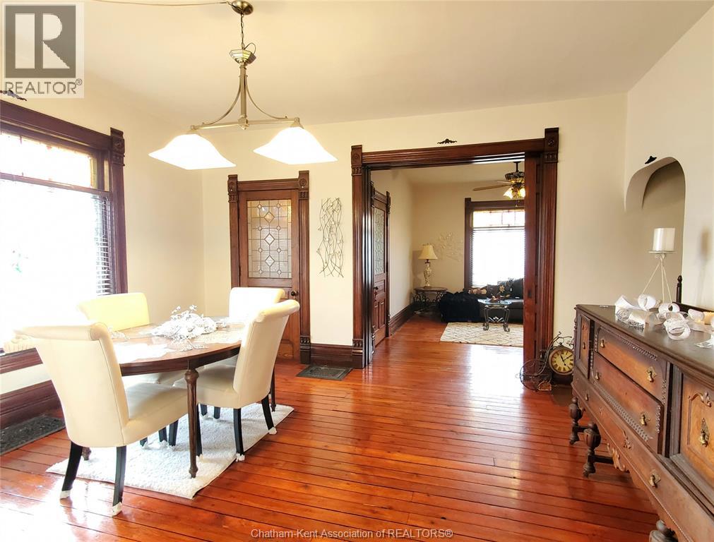 Welcome to this beautifully maintained four-bedroom Victorian-style home, ideally situated in Chatham’s historic theatre district. Rich in character and thoughtfully updated, this residence offers a rare blend of timeless craftsmanship, modern reliability, and income-generating potential. The main floor features a gracious living room, and a formal dining room—perfect for entertaining or comfortable everyday living. The functional kitchen has an adjoining dining nook, while stunning stained-glass windows and meticulously restored ornamental trim highlight the home’s historic elegance and enduring quality. Enjoy the convenience of the main floor laundry and full 4 piece bath. Upstairs, four generous-sized bedrooms are complemented by a charming three-piece bathroom featuring a cast-iron soaker tub that exudes character, warmth, and dignity. Significant upgrades include a 200-amp electrical service with fully updated wiring throughout, providing peace of mind while preserving the integrity of the home. The property has been lovingly maintained and is in excellent condition. With its prime location, flexible layout, and strong architectural appeal, this home lends itself exceptionally well to use as an Airbnb or short-term rental. In addition, the property offers excellent potential for the construction of an accessory dwelling unit (ADU), creating opportunities for multi-generational living or additional rental income. A truly special offering where historic charm, modern convenience, and future potential converge. Don't delay, book your showing today! (id:4555)