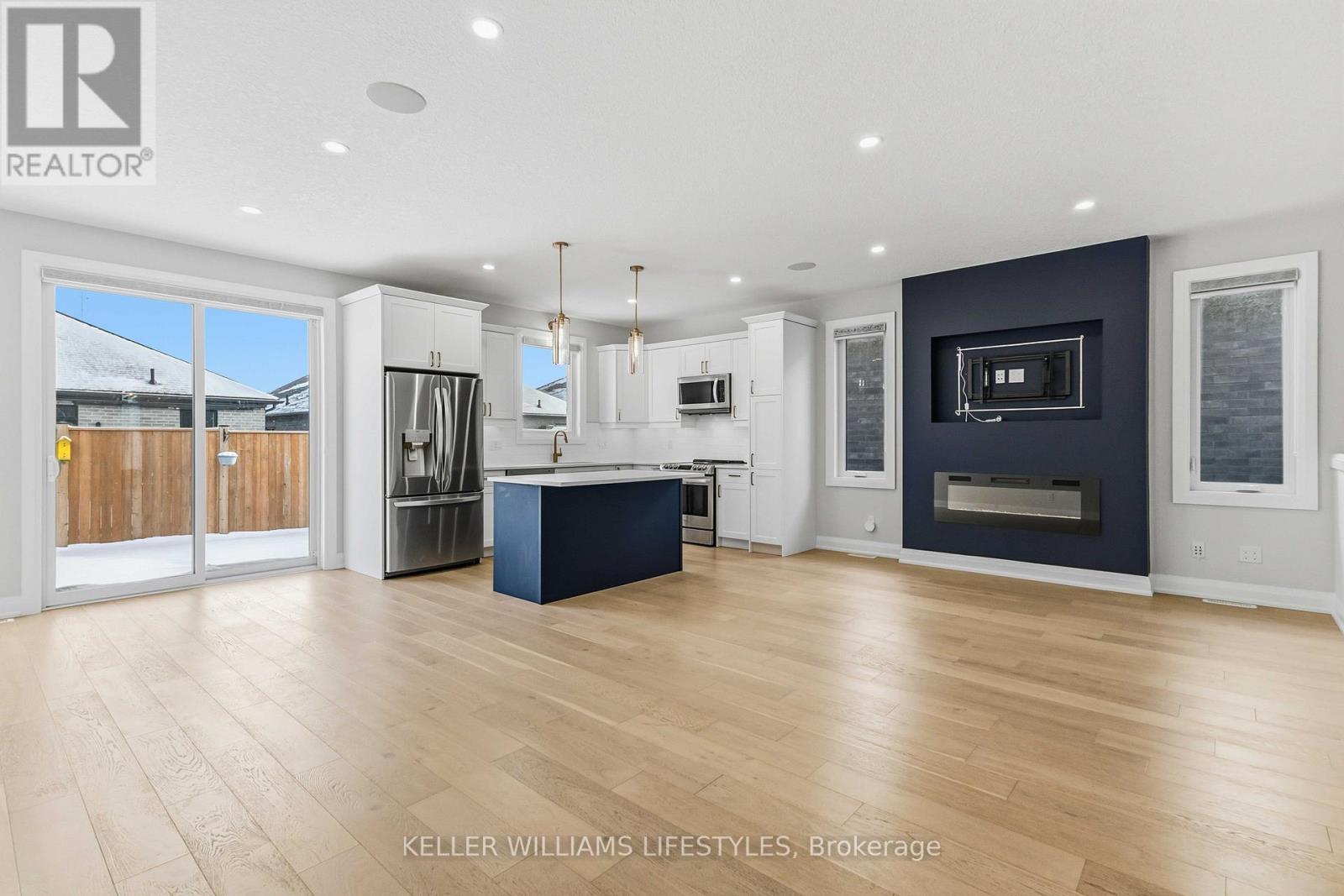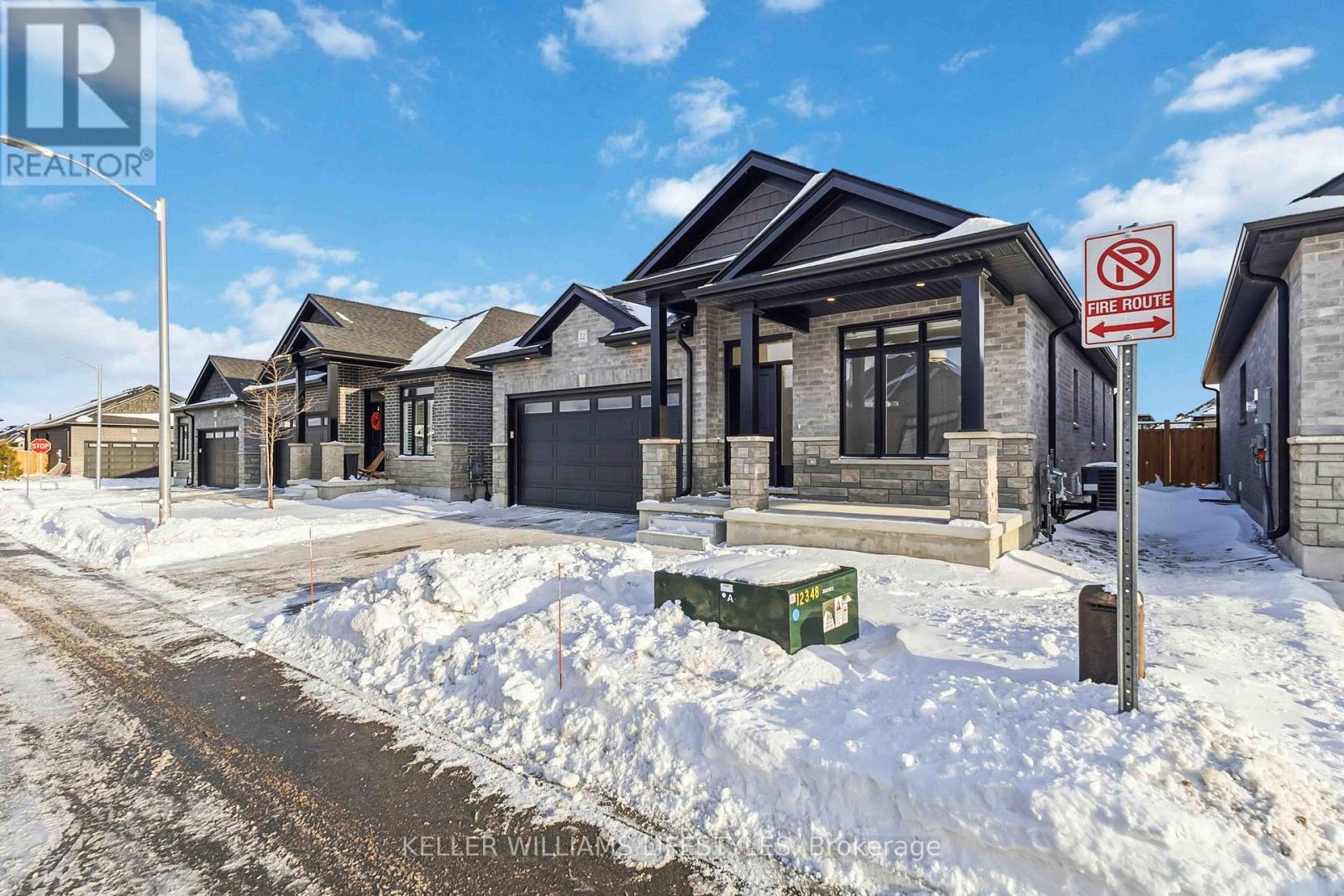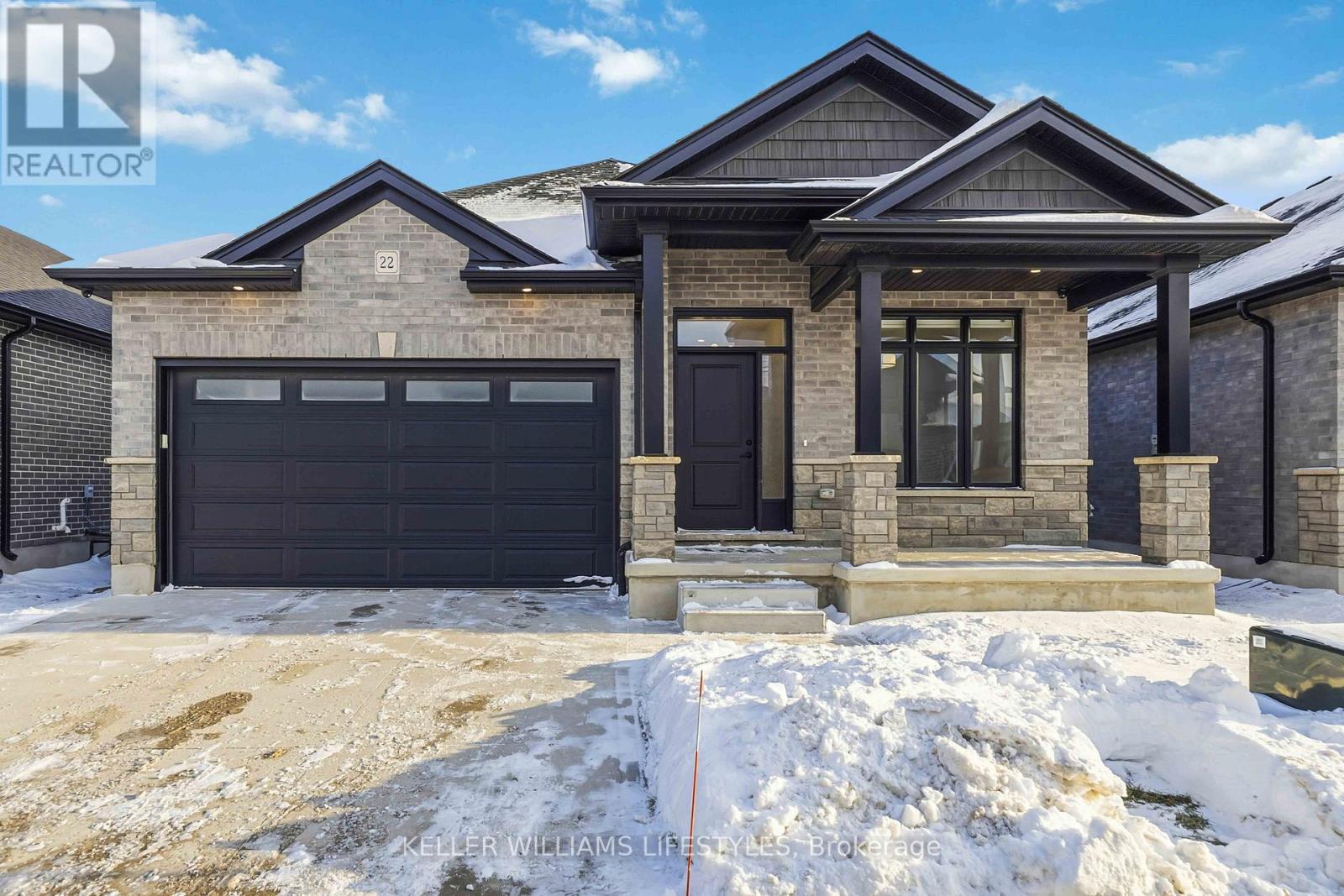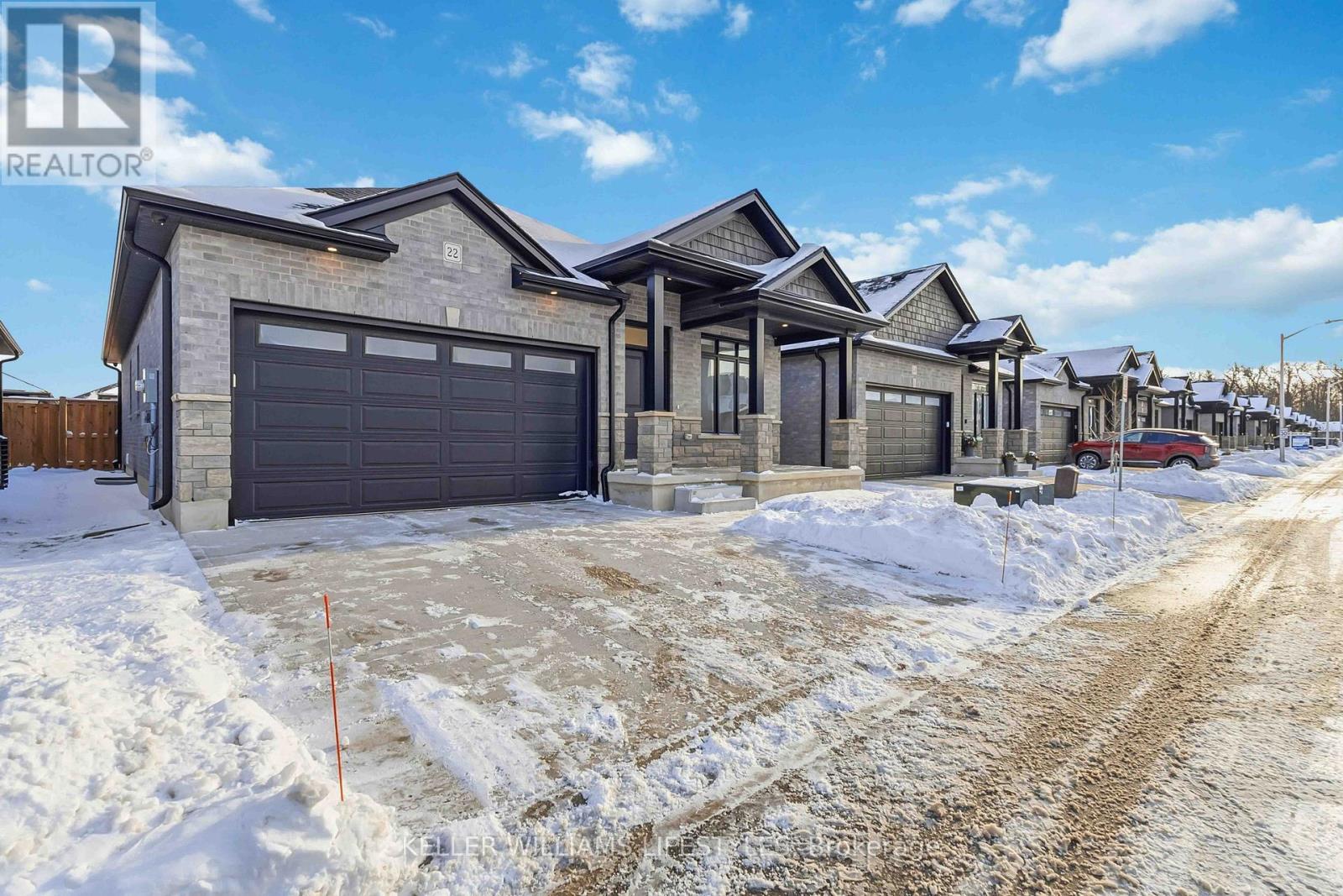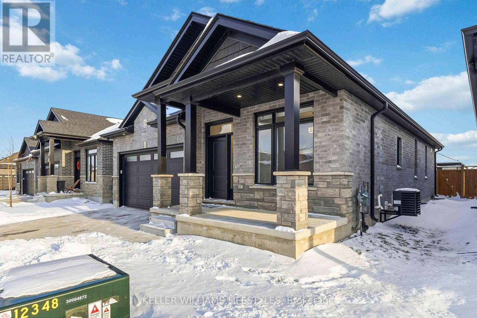 Welcome to Unit 22 at 383 Daventry Way - a beautifully maintained detached bungalow for lease in the sought-after Komoka/Kilworth area (Middlesex Centre), offering convenient one-level living with 2 bedrooms, 2 full bathrooms, and approximately 1400 sq. ft. of above-grade space.Built in 2021, this home boasts excellent curb appeal with a brick and stone exterior, a welcoming front porch, and ample private parking with a double-car garage plus a two-car driveway. Inside, you'll appreciate the bright and spacious feel created by 9-foot ceilings throughout. The open-concept main floor features in-suite laundry, central air conditioning, engineered hardwood flooring, and a stylish white kitchen complete with quartz countertops. An electric fireplace enhances the main living area, adding warmth and ambiance. Step outside to a private, fully enclosed backyard - ideal for relaxing or entertaining. The unfinished basement is framed and insulated for a potential two-bedroom, recreation room, and bathroom layout, making it a clean and functional space perfect for additional storage of seasonal items, sports gear and more. Situated within the Daventry bungalow condominium community, this property offers a peaceful Komoka lifestyle just minutes west of London and close to Komoka Provincial Park, wellness facilities, a golf course, and more. Even more convenience is on the way, with a new Shoppers Drug Mart and No Frills currently under construction directly across the road and expected to open in Spring 2026. Appliances are included; utilities are extra. Flexible possession is available. If you're searching for a bungalow for lease near London, Ontario - complete with parking, a private yard, and thoughtful interior finishes - this property is a must-see. (id:4555)