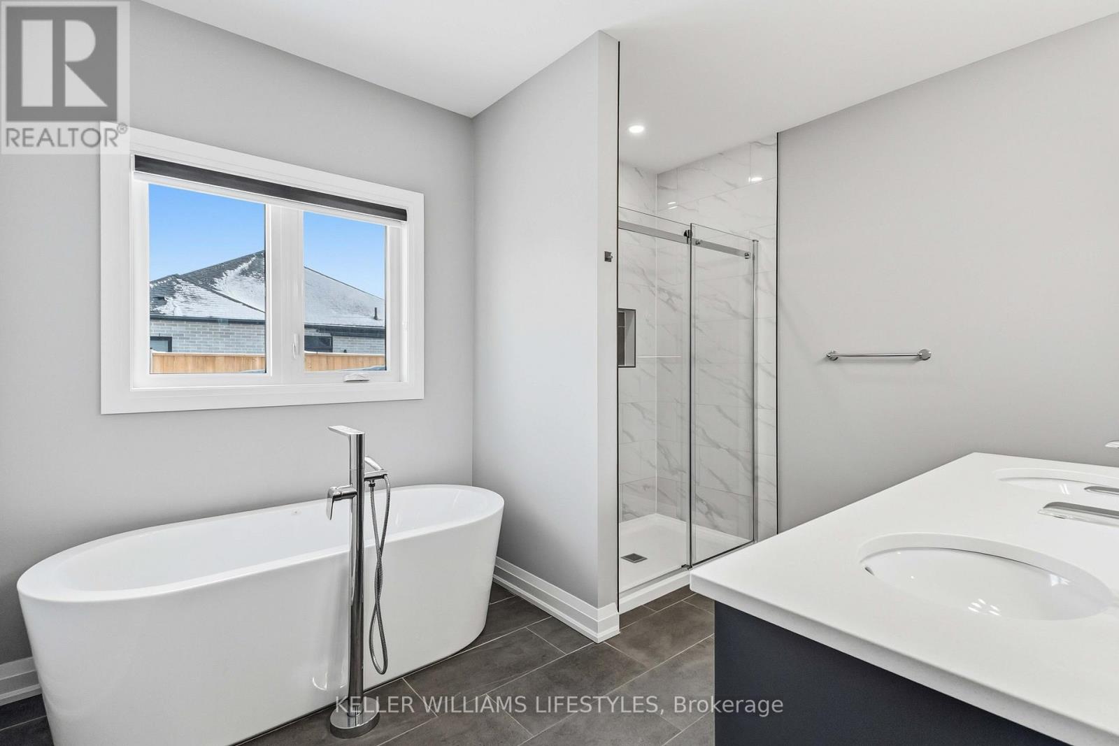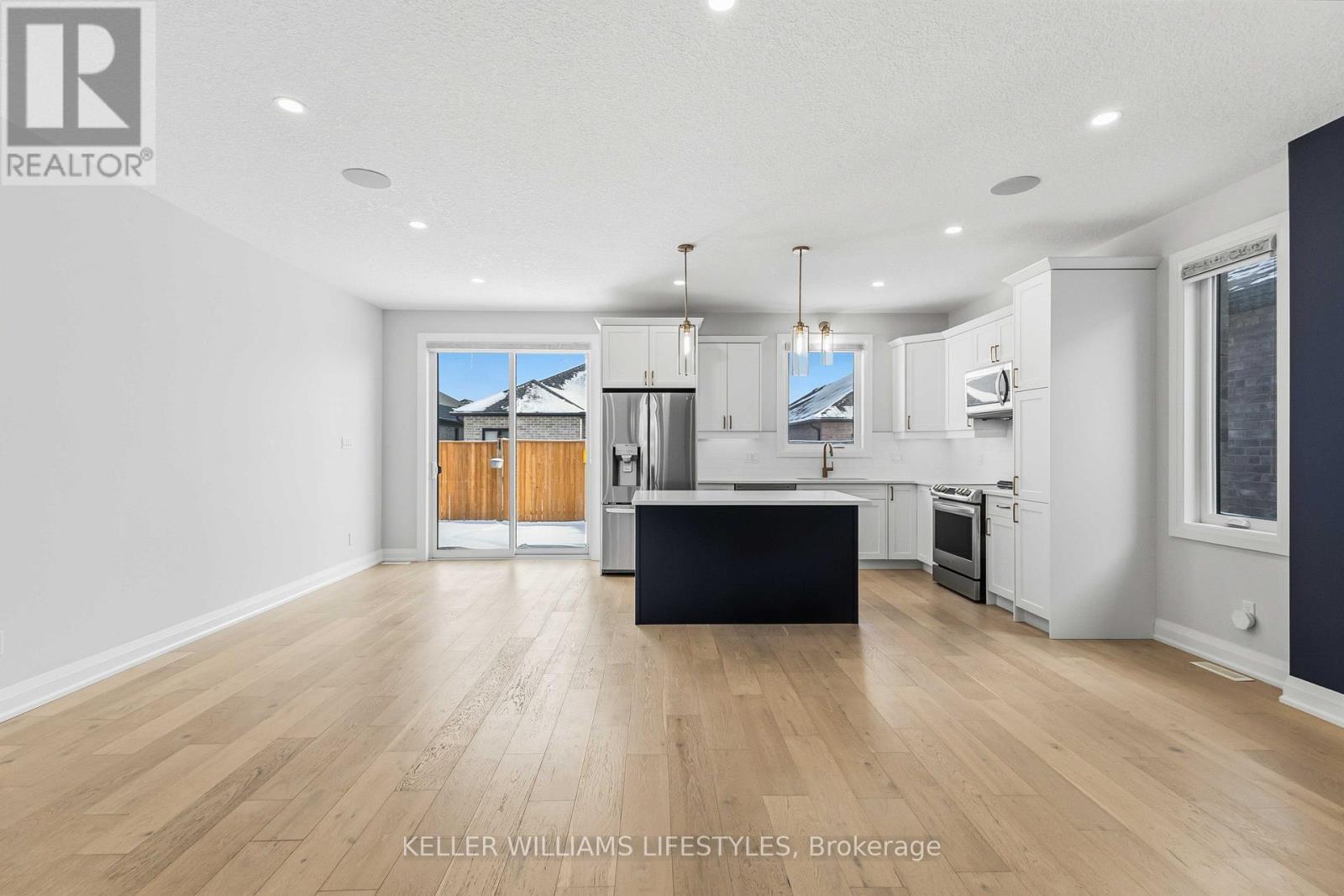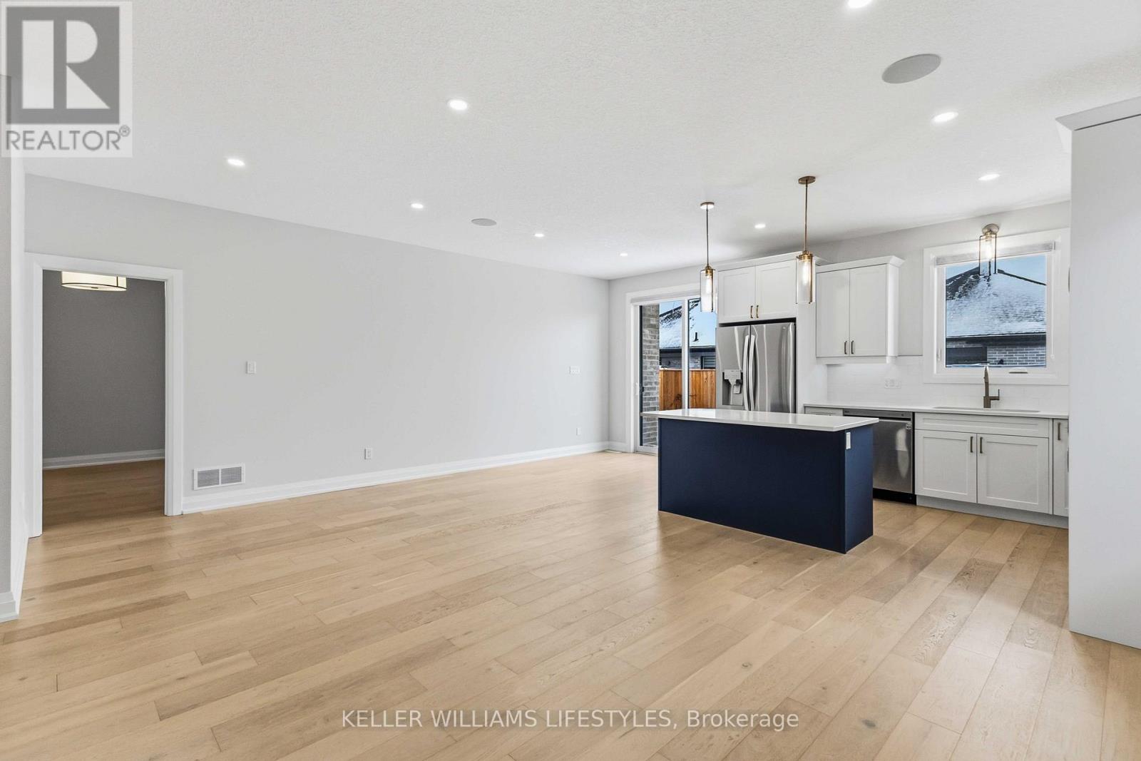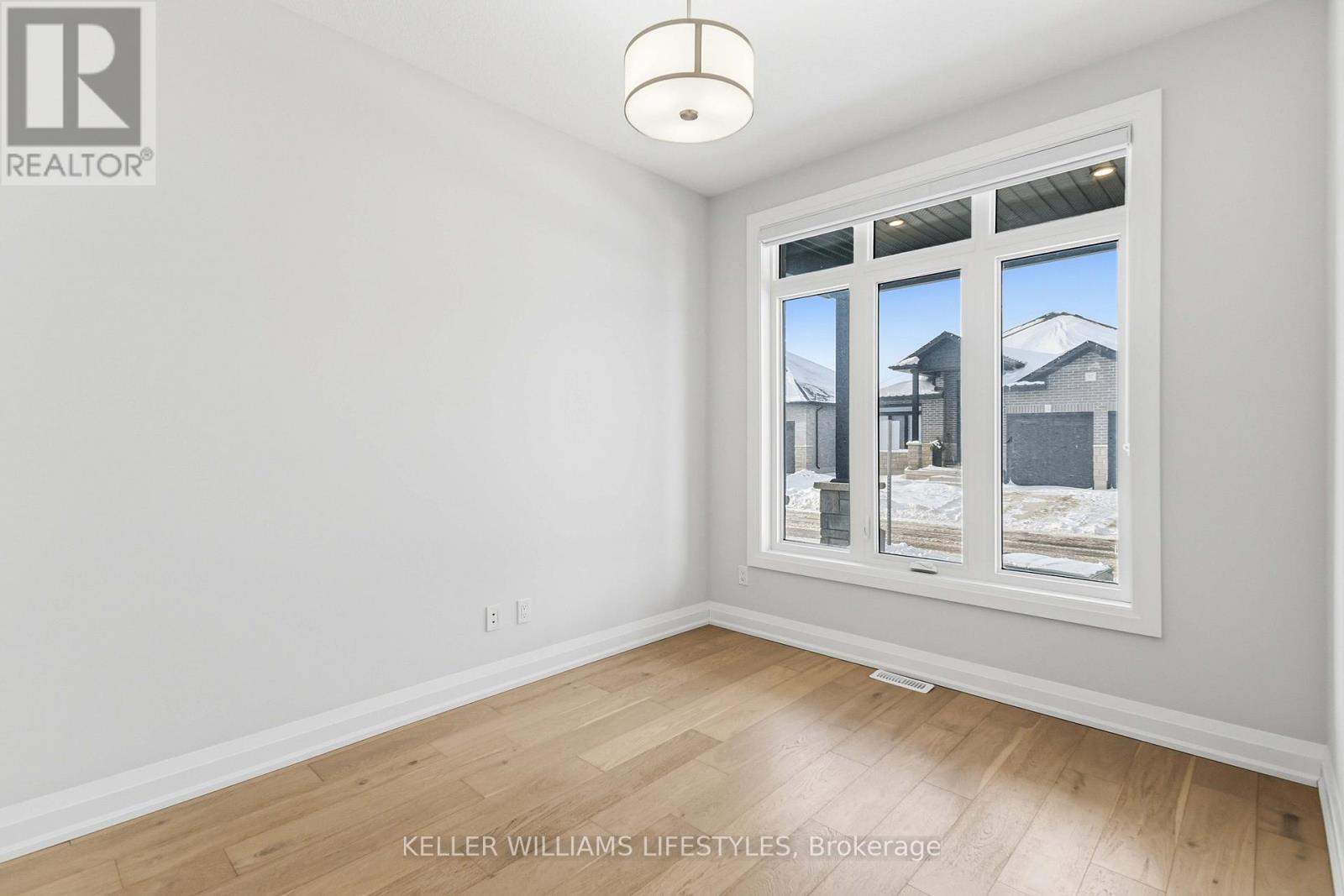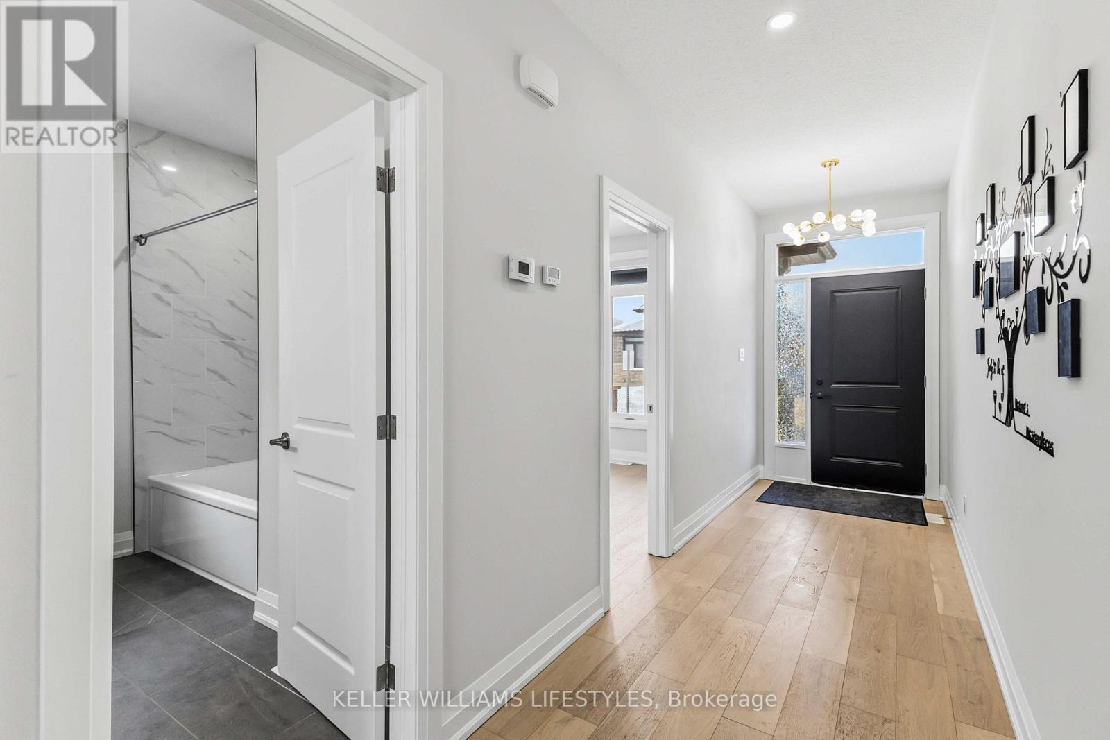 Welcome to Unit 22 at 383 Daventry Way - a beautifully maintained detached bungalow for lease in the sought-after Komoka/Kilworth area (Middlesex Centre), offering convenient one-level living with 2 bedrooms, 2 full bathrooms, and approximately 1400 sq. ft. of above-grade space.Built in 2021, this home boasts excellent curb appeal with a brick and stone exterior, a welcoming front porch, and ample private parking with a double-car garage plus a two-car driveway. Inside, you'll appreciate the bright and spacious feel created by 9-foot ceilings throughout. The open-concept main floor features in-suite laundry, central air conditioning, engineered hardwood flooring, and a stylish white kitchen complete with quartz countertops. An electric fireplace enhances the main living area, adding warmth and ambiance. Step outside to a private, fully enclosed backyard - ideal for relaxing or entertaining. The unfinished basement is framed and insulated for a potential two-bedroom, recreation room, and bathroom layout, making it a clean and functional space perfect for additional storage of seasonal items, sports gear and more. Situated within the Daventry bungalow condominium community, this property offers a peaceful Komoka lifestyle just minutes west of London and close to Komoka Provincial Park, wellness facilities, a golf course, and more. Even more convenience is on the way, with a new Shoppers Drug Mart and No Frills currently under construction directly across the road and expected to open in Spring 2026. Appliances are included; utilities are extra. Flexible possession is available. If you're searching for a bungalow for lease near London, Ontario - complete with parking, a private yard, and thoughtful interior finishes - this property is a must-see. (id:4555)