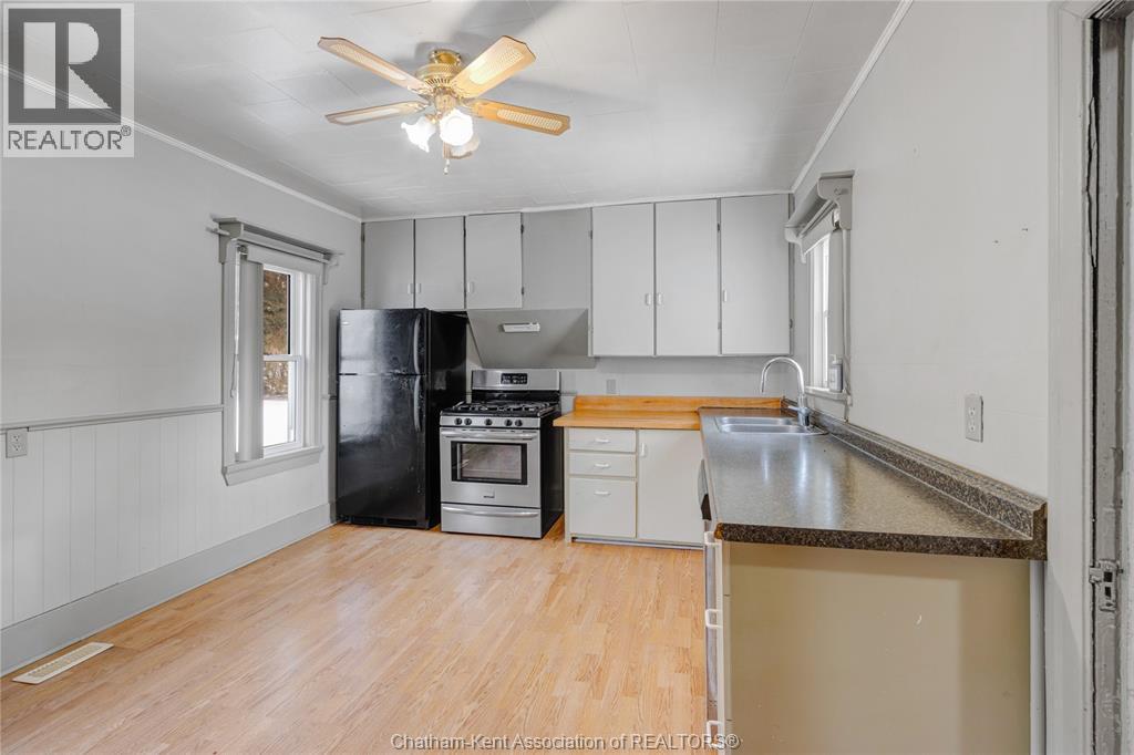 Comfortable and affordable single-family home ideally located in Dealtown, just minutes from Lake Erie and a short drive to Chatham. This property presents a great opportunity for first-time buyers, investors, or those looking to downsize. The main level offers a functional layout featuring a spacious eat-in kitchen, a comfortable living room, a bedroom or home office, and a full bathroom. Upstairs, you’ll find three additional bedrooms, providing flexibility for a variety of living arrangements. With a practical floor plan and outdoor space that includes a partially fenced yard, this home offers solid long-term value in a desirable lakeside community. Conveniently located near the Lake Erie waterfront and within easy reach of Chatham, the property may also be purchased on its own or together with the neighbouring mixed-use property (MLS® #26001411). (id:4555)