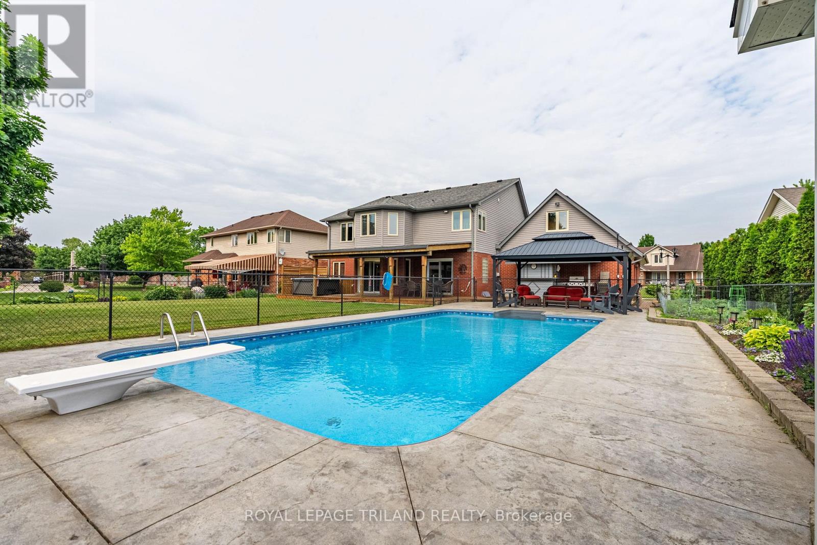 Welcome to 47 Manley Drive, Dorchester - the ultimate family home with space, comfort, and backyard fun! This impressive two-storey home is perfectly designed for growing families and those who love to entertain. Featuring 4 spacious bedrooms and 4 bathrooms, there's room for everyone to live, work, and relax comfortably. The heart of the home is the large, well-appointed kitchen, complete with patio doors leading directly to the backyard-perfect for summer BBQs and seamless indoor-outdoor living. The kitchen flows effortlessly into the living area, where a cozy gas fireplace creates a warm and inviting space for family movie nights and gatherings. A main-floor laundry room adds everyday convenience. Upstairs, the bedrooms are generously sized and thoughtfully laid out. The primary bedroom is a true retreat, featuring a large walk-in closet and a private ensuite, creating the perfect place to unwind. Multiple bathrooms throughout the home ensure stress-free mornings for the entire household. Step outside and enjoy a backyard designed with both fun and peace of mind in mind. The in-ground pool is fully fenced and completely separate from the rest of the yard, offering added safety and privacy. The remaining backyard is also fully fenced, providing plenty of space to throw a baseball, host outdoor games, or let kids and pets play freely. The oversized double-car garage offers excellent storage and convenience, along with a bonus room above the garage-currently used for storage but full of potential as a home office, gym, or flex space. Located in the sought-after community of Dorchester, close to schools, parks, and amenities, this home blends small-town charm with spacious, family-friendly living. 47 Manley Drive is more than a house-it's where your next chapter begins. (id:4555)