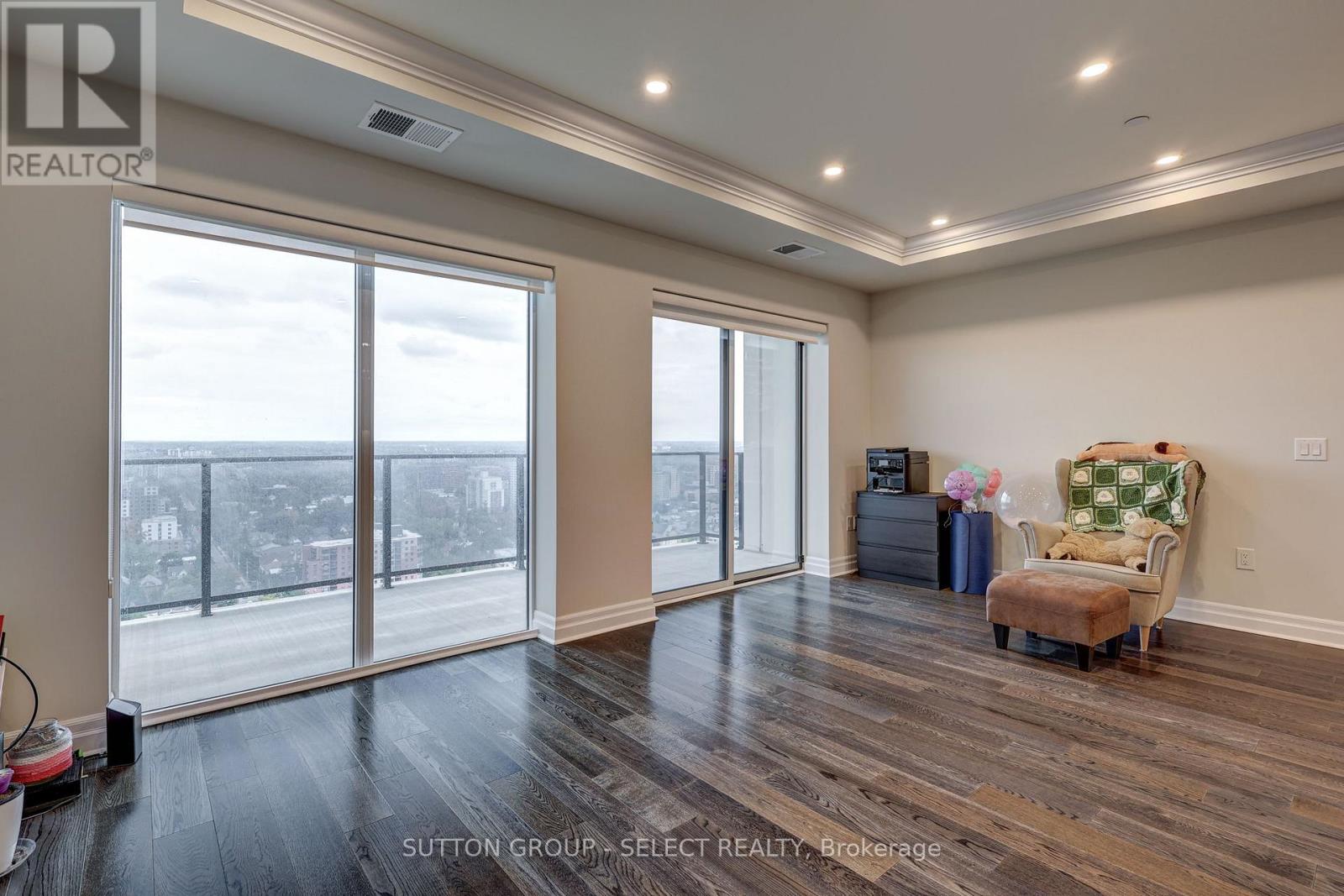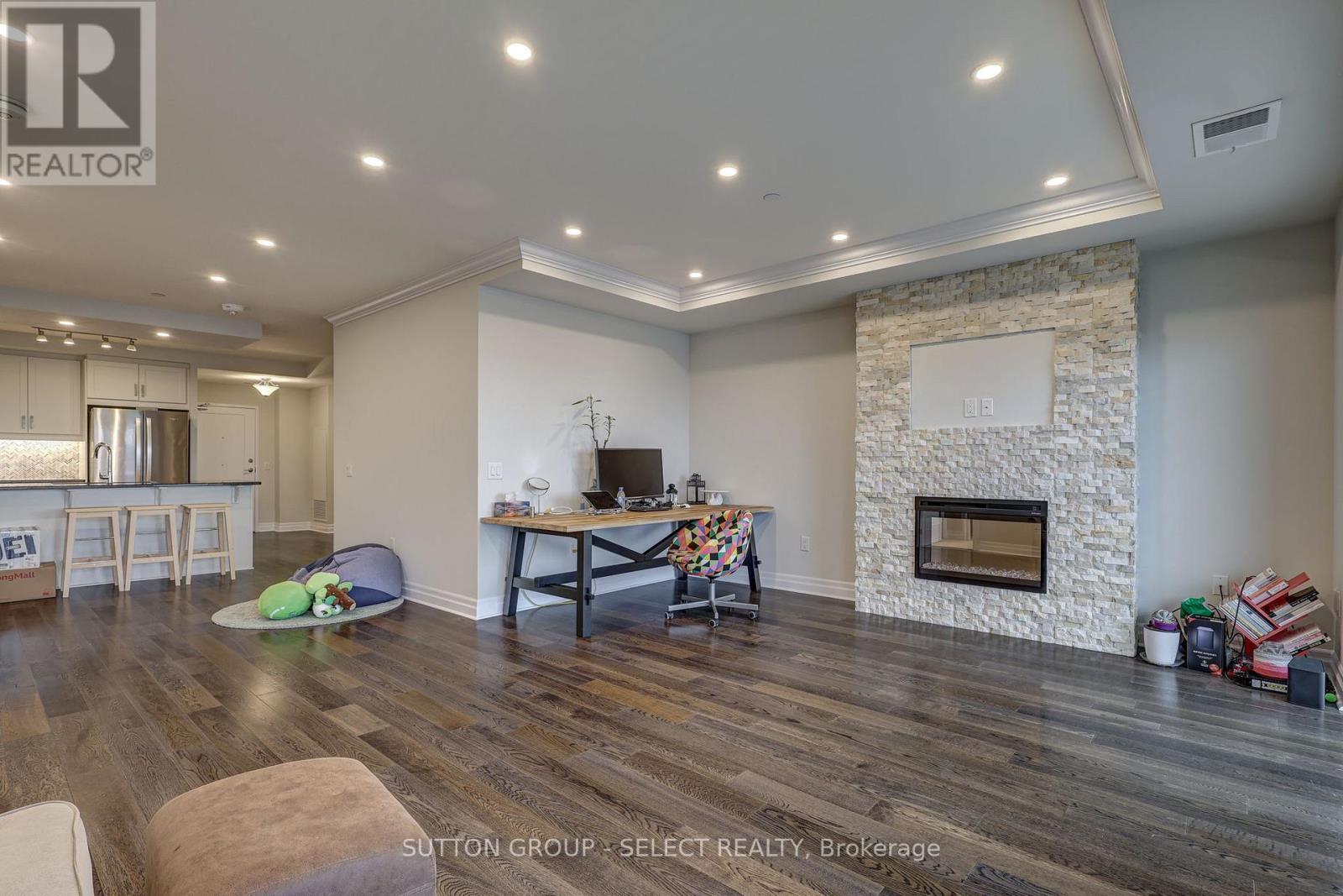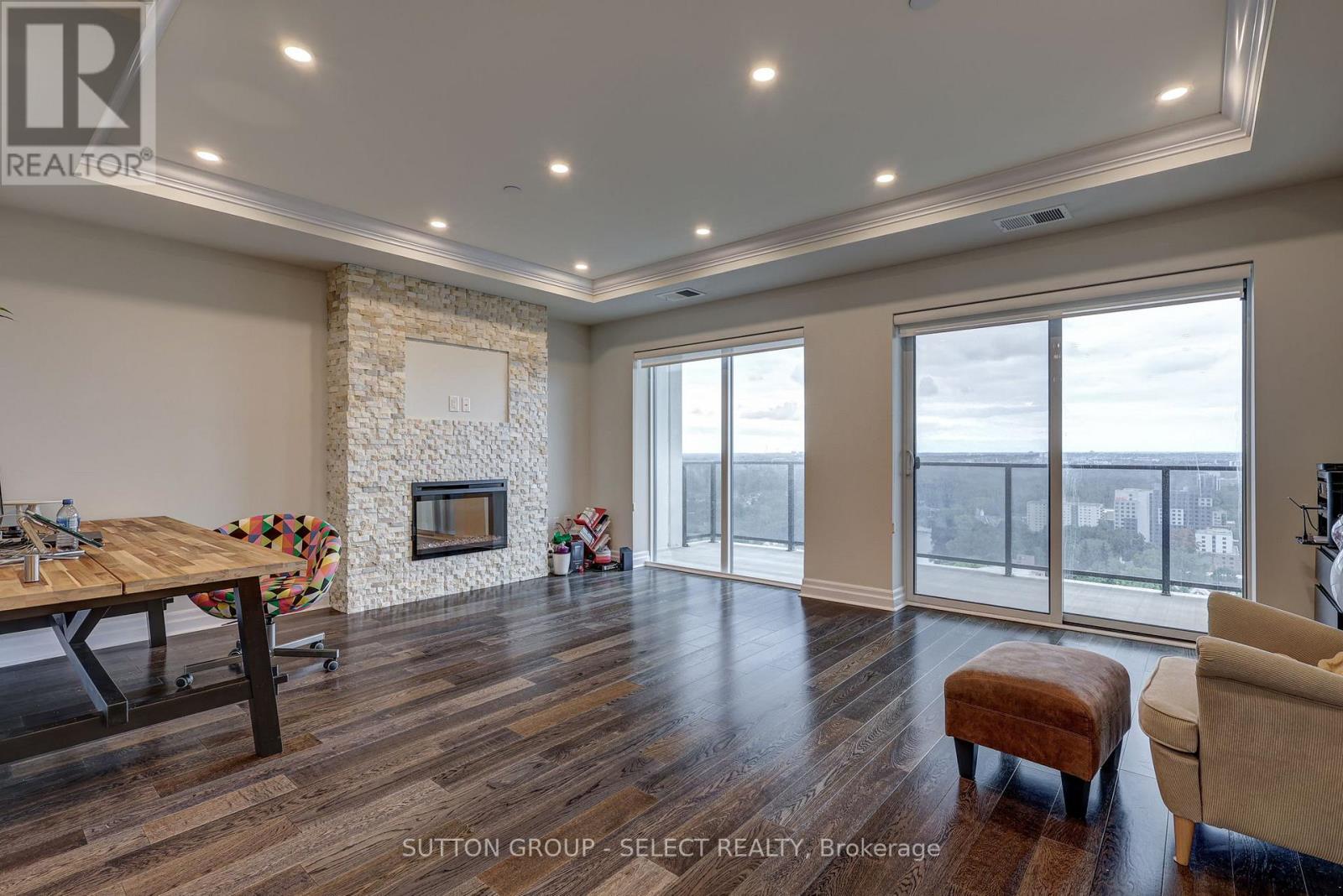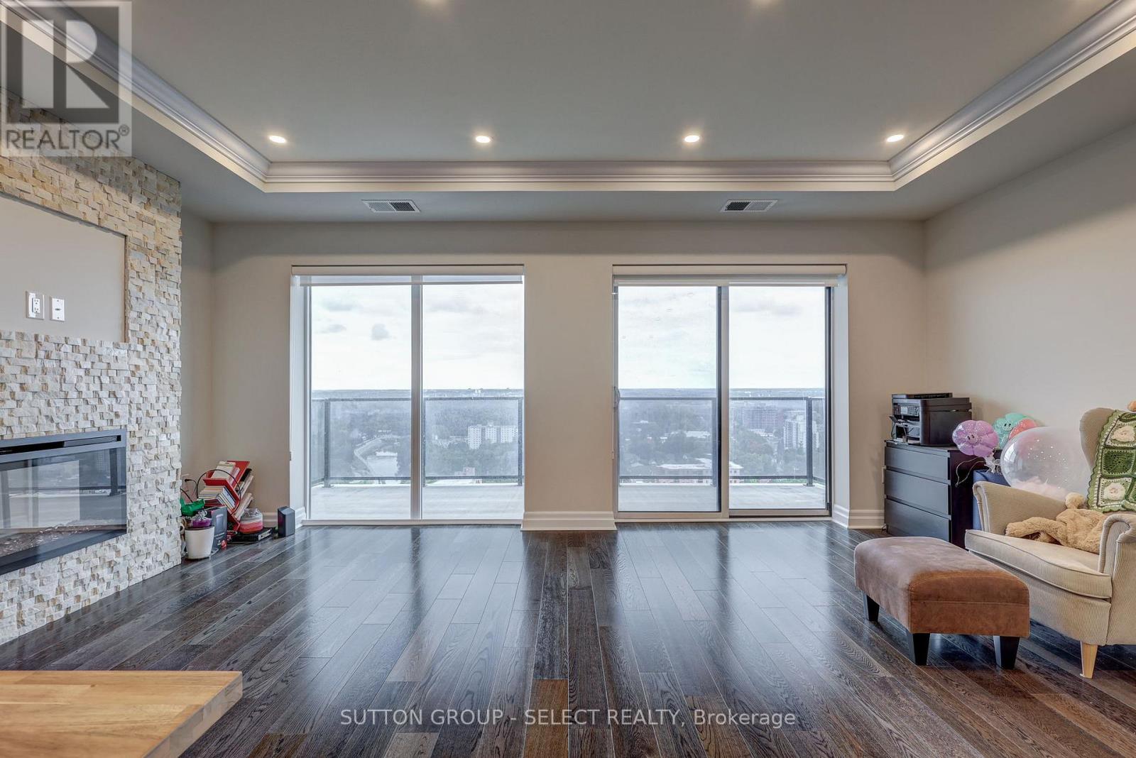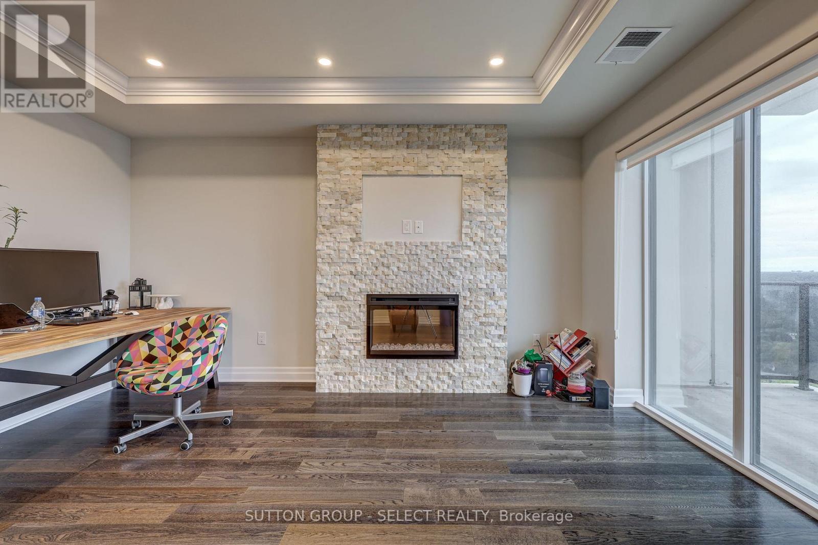 Luxury living in the heart of downtown London. This beautifully appointed 1-bedroom + den, 2 full-bathroom condo offers approximately 1,315 sq ft of thoughtfully designed living space, featuring stunning city views, an open-concept layout, and sleek contemporary finishes. Floor-to-ceiling windows fill the space with natural light, while the modern kitchen features quartz countertops, stainless steel appliances, and a breakfast bar-perfect for everyday living and entertaining. Enjoy sunsets from your private balcony and unwind in the spacious primary bedroom with a walk-in closet and private ensuite. The den provides flexible space for a home office or additional living area. In-suite laundry and ample storage add everyday convenience.The building features exceptional amenities, including a rooftop patio with panoramic views, a social lounge, state-of-the-art fitness centre, golf simulator, library, and games area. One underground assigned parking space is included. Tenants only pay hydro-everything else is covered. Conveniently located with Reset Social Cafe on the main level and just steps from Covent Garden Market, Budweiser Gardens, parks, dining, and entertainment, this condo is ideal for professionals seeking a vibrant downtown lifestyle. Lease occupancy available starting March 15,2026. (id:4555)
