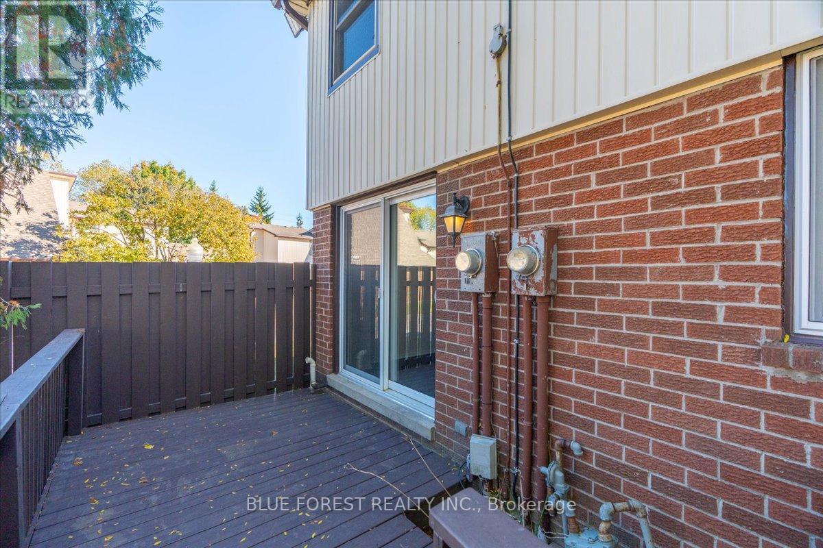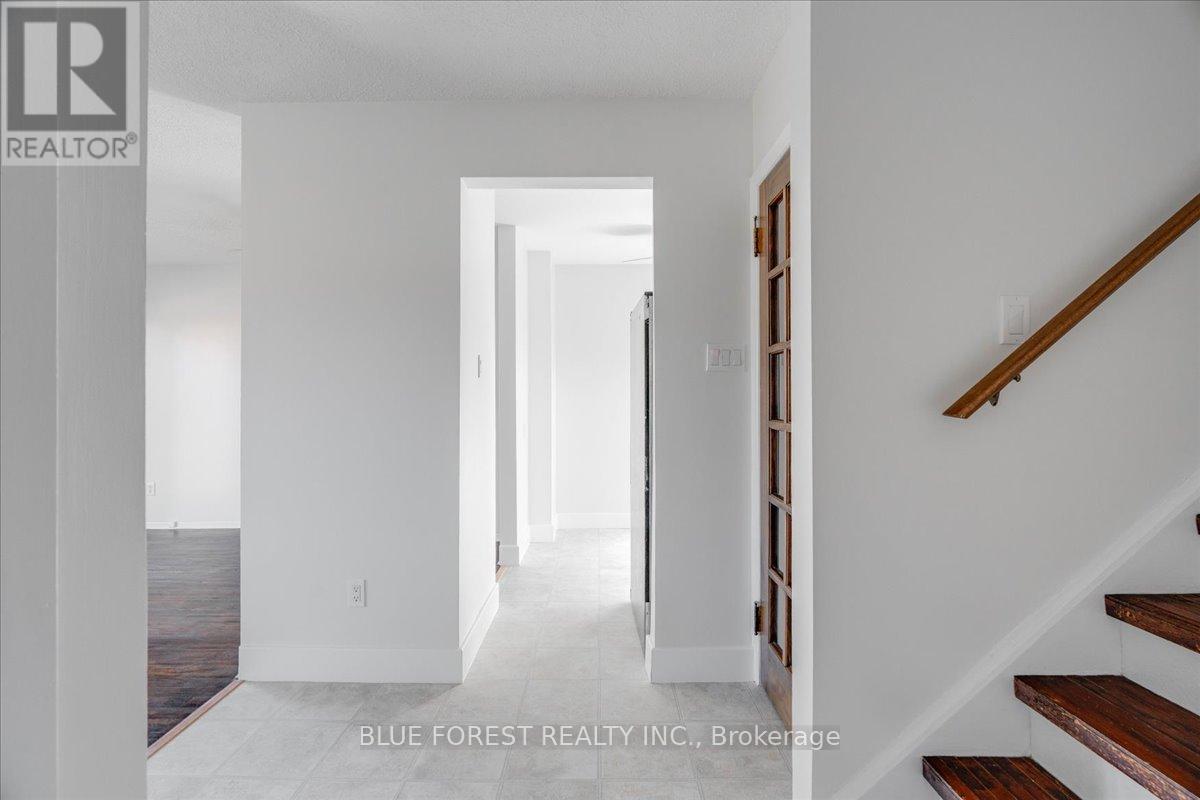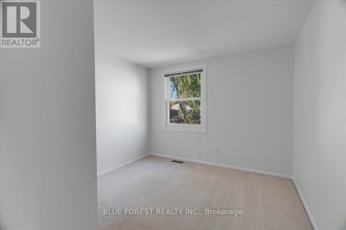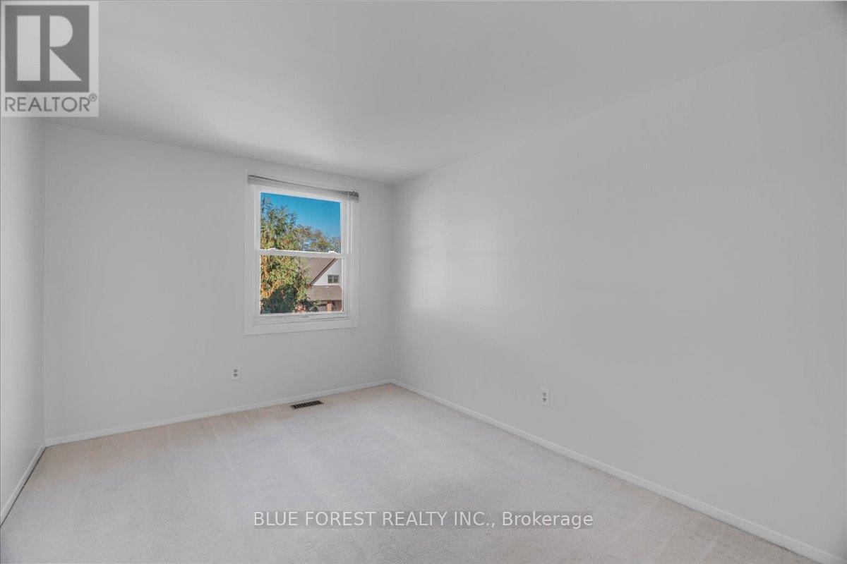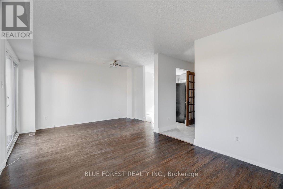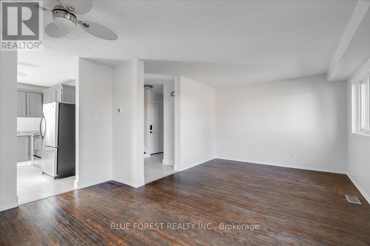Welcome to this beautifully maintained end-unit condo townhome in the highly desirable South London community-an ideal opportunity for first-time buyers, growing families, or savvy investors. Bright, spacious, and truly move-in ready, this 3-bedroom home offers outstanding value and lifestyle appeal. The main level features updated windows, a new front door with screen, and fresh paint throughout, creating a clean and inviting atmosphere. Rich hardwood flooring flows through the living area and opens onto your private balcony-perfect for morning coffee or evening relaxation. Upstairs, three generous bedrooms provide comfortable space for the whole family. The rare attached tandem garage offers convenient access from the front straight through to the backyard, while the unique layout with garages separating each unit means no shared living walls for added privacy. The finished lower level adds exceptional versatility, ideal for a rec room, home office, gym, or playroom. Recent updates including a newer furnace and A/C (2019) and a freshly re-stained deck offer peace of mind and low-maintenance living. Enjoy the benefits of low condo fees while living in a prime South London location close to Highway 401, shopping, schools, parks, and everyday amenities. (id:4555)