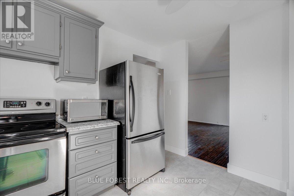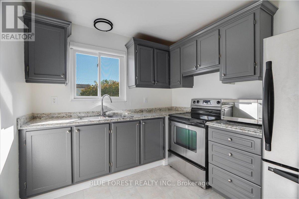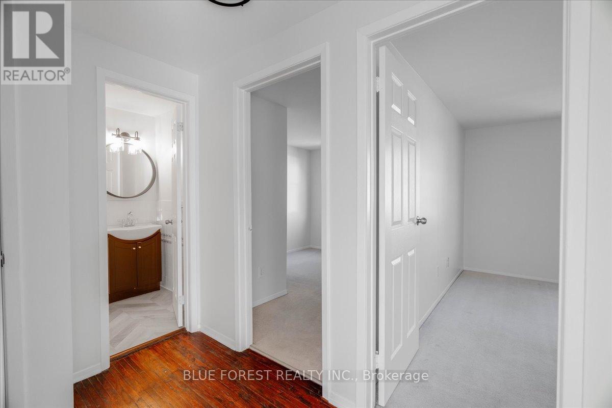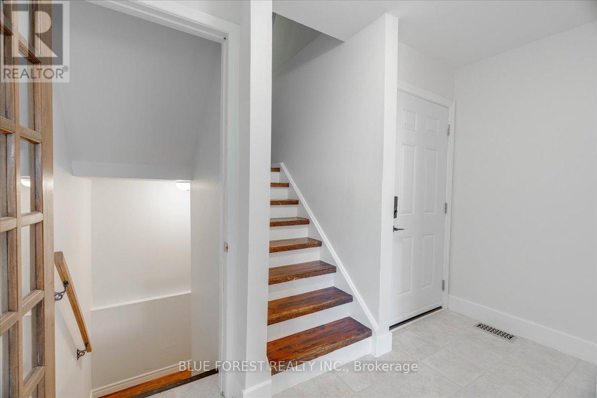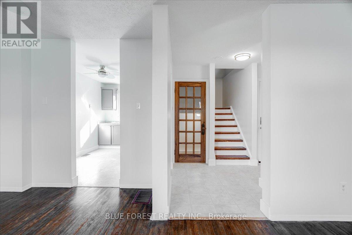 Welcome to this beautifully maintained end-unit condo townhome in the highly desirable South London community-an ideal opportunity for first-time buyers, growing families, or savvy investors. Bright, spacious, and truly move-in ready, this 3-bedroom home offers outstanding value and lifestyle appeal. The main level features updated windows, a new front door with screen, and fresh paint throughout, creating a clean and inviting atmosphere. Rich hardwood flooring flows through the living area and opens onto your private balcony-perfect for morning coffee or evening relaxation. Upstairs, three generous bedrooms provide comfortable space for the whole family. The rare attached tandem garage offers convenient access from the front straight through to the backyard, while the unique layout with garages separating each unit means no shared living walls for added privacy. The finished lower level adds exceptional versatility, ideal for a rec room, home office, gym, or playroom. Recent updates including a newer furnace and A/C (2019) and a freshly re-stained deck offer peace of mind and low-maintenance living. Enjoy the benefits of low condo fees while living in a prime South London location close to Highway 401, shopping, schools, parks, and everyday amenities. (id:4555)