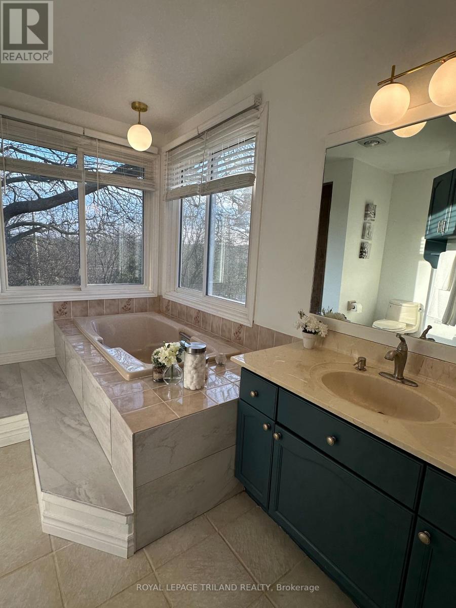 Welcome to 71 Chalfont Road - a rare urban retreat that feels like a private cottage escape, right in the heart of the city. Located in a quiet cul-de-sac with an extra-large pie-shaped lot (174 feet) overlooking the river's edge ravine, this home features an elevated sundeck, gardens, and mature trees. This beautifully maintained two-storey home offers 4+2 bedrooms and 3.5 bathrooms, thoughtfully designed for both everyday living and entertaining. Upon entry, you're welcomed by a gracious front living room ideal for guests, while a separate family living area with a cozy fireplace creates a warm and inviting atmosphere for daily life. Toward the back of the home, the kitchen and dining area overlook a stunning backyard through large windows, offering picturesque views that change beautifully with the seasons. This home truly allows you to experience all four seasons from the comfort of your own space. Upstairs, the primary bedroom features a walk-in closet and a 5-piece ensuite with a Jacuzzi tub, along with generously sized additional 3 bedrooms. The fully finished basement adds exceptional versatility, complete with a sink and cabinetry, making it ideal as a kitchenette - perfect for extended family, guests, or flexible living arrangements and 5th/6th bedroom, a 3-piece bathroom, a large recreation room, and a storage/utility room. Just a 1-2 minute walk to John Dearness PS. From the backyard gate, cross the street and within less than 1 5 minute walk enjoy direct access to the Thames Valley river trail and Springbank Park, one of London's most sought after green spaces, ideal for daily walks, biking, and nature enjoyment. Updates include: Roof and Windows (2019), Newly Painted (2025), Pot Lights on the main floor, and Appliances (2018) including a Refrigerator, Dishwasher, Washer & Dryer, along with updates to the powder room and 2nd-floor bathroom. (id:4555)