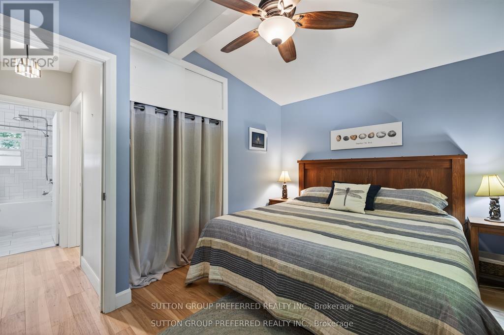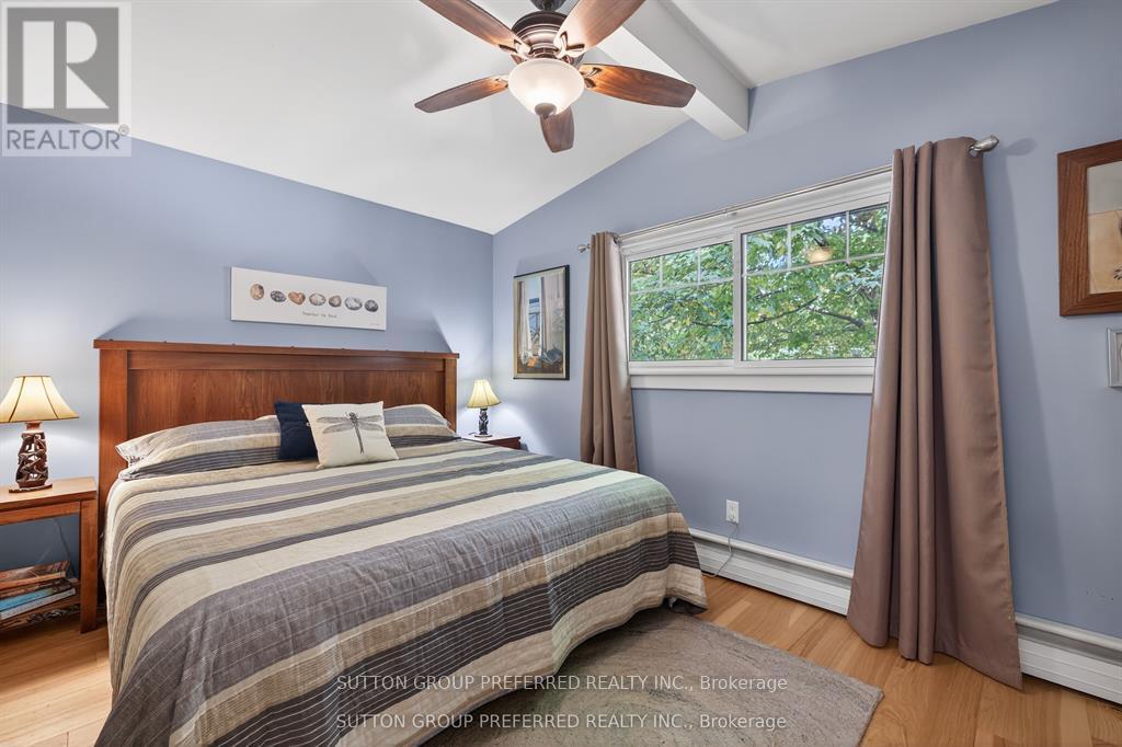 Welcome to this beautiful and unique home located in Old South near Victoria Hospital. Perfectly situated close to downtown while tucked far enough away to enjoy the charm of a mature neighborhood. Entering the home your eyes will be drawn to the vaulted ceilings and quality finishes throughout. The completely renovated main level (2019) features hand-scraped white oak engineered hardwood floors that create a warm and welcoming space. The custom kitchen is highlighted by the floor to ceiling solid wood cabinetry which provides an abundance of storage with striking leathered granite countertops. The upper level features cozy hickory hardwood flooring (2022), two freshly painted good sized bedrooms also with vaulted ceilings. The newly renovated bathroom boasts of a large soaker tub combined with a dual head shower system. Off the kitchen is a large, bright and airy sunroom where you can enjoy your private backyard oasis even on rainy days. The yard is fully fenced, beautifully landscaped with a burbling water feature . A peaceful place to relax and enjoy morning coffee or an evening beverage. This home has many updates including a new roof (2025)with transferable warranty, new windows within the past 8 years and an automated sprinkler system. The lower level has a separate entrance and could be converted into an in-law or rental suite. (id:4555)