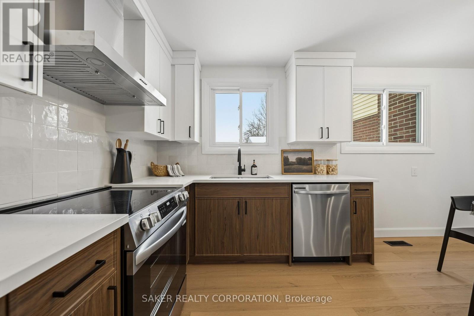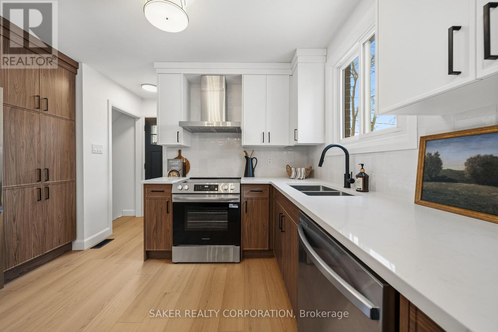 Professionally Renovated Semi-Detached! Welcome to 206 Admiral Drive. This magazine-worthy renovation is as tasteful, as it is professionally executed. From the moment you step inside, the shiplap fireplace finished in a dramatic Iron Ore stops you in your tracks and beautifully anchors the living space. The white walnut kitchen is both stunning and functional; featuring quartz countertops, artisan subway tile backsplash, stainless steel appliances, and an oversized pantry bank beside the fridge, offering exceptional storage without sacrificing space. Upstairs, you'll find three spacious bedrooms with charming fixtures and continued Iron Ore accents on the closet doors, adding warmth and character. The three-piece bathroom is thoughtfully designed with a minimalist Flodsten floor tile, a wood-grain vanity, sleek black fixtures, and a stylish tub/shower combo finished in Italian-inspired artisan subway tile; perfect for both adults and children. The lower level is bright and airy with pot lights and light tones, offering an expansive rec space with lots of room for activities. Outside, enjoy a fully fenced backyard, ideal for kids and pets. Beyond its stunning design, this home has been meticulously maintained with major updates completed: 100-amp breaker panel (2026), furnace (2024), A/C (2020), roof (2020), driveway (2018), fence (2018), swinging gate (2019), newer shed (2019), and most windows (2006).Experience this showstopper for yourself today! (id:4555)