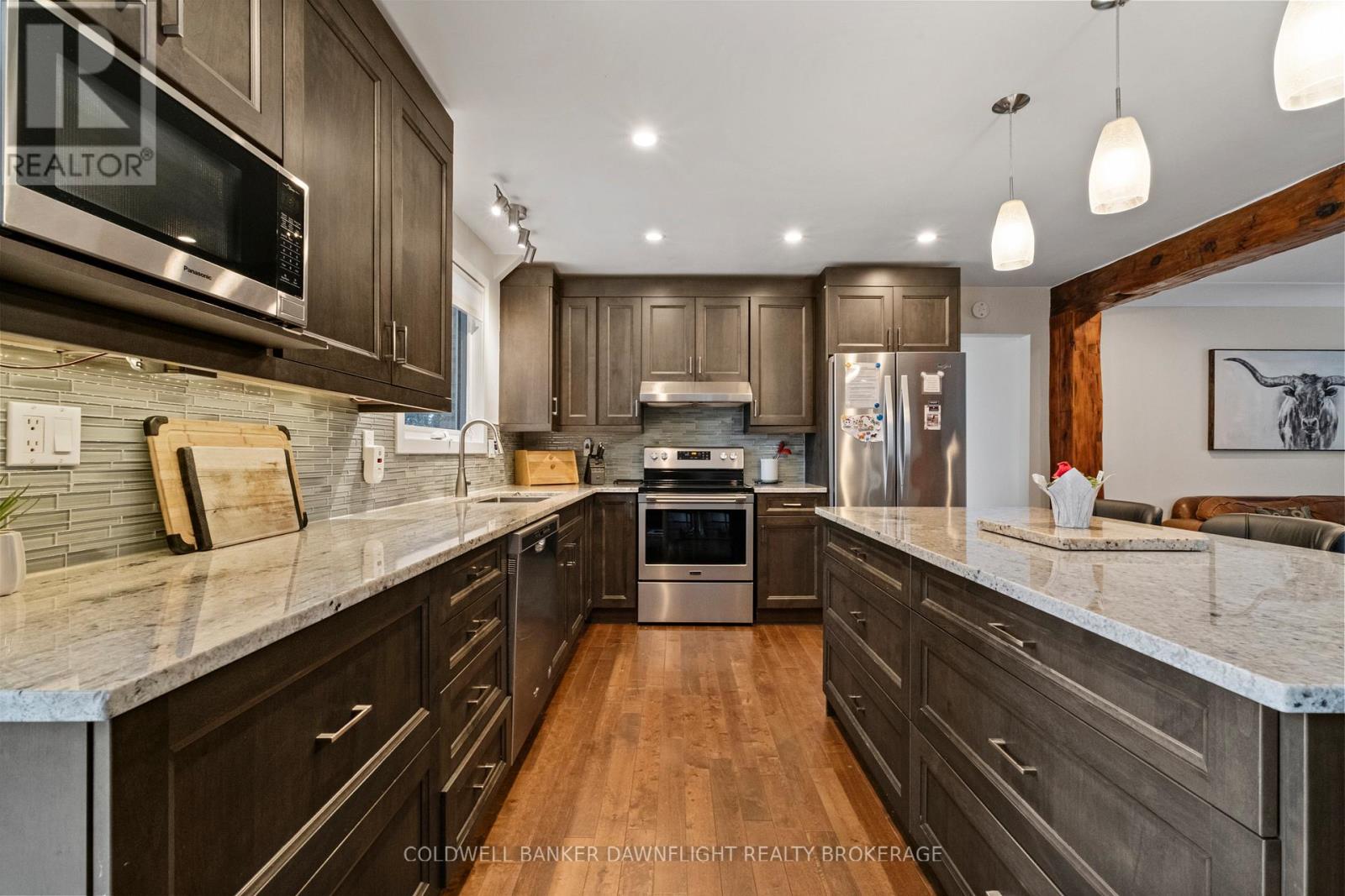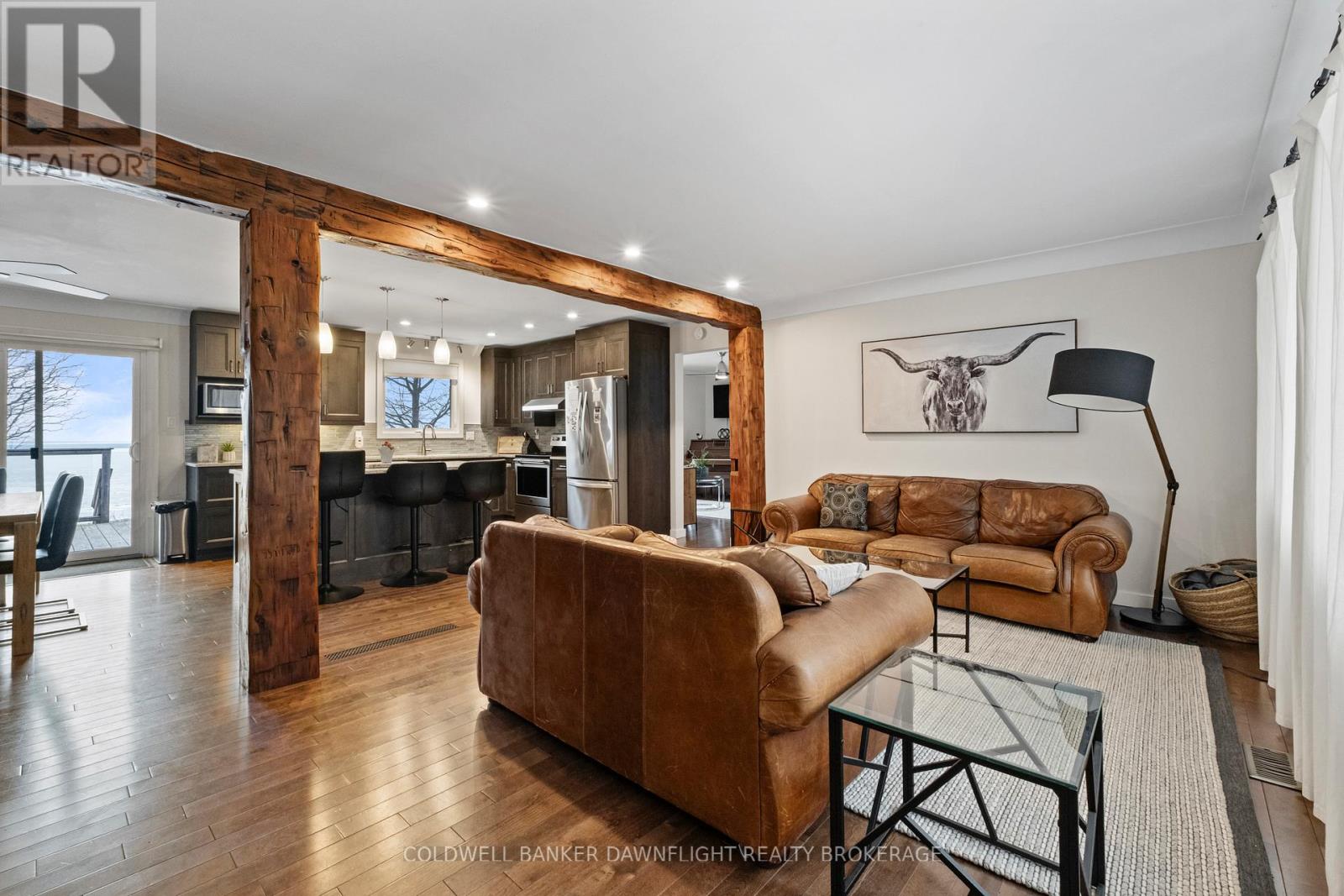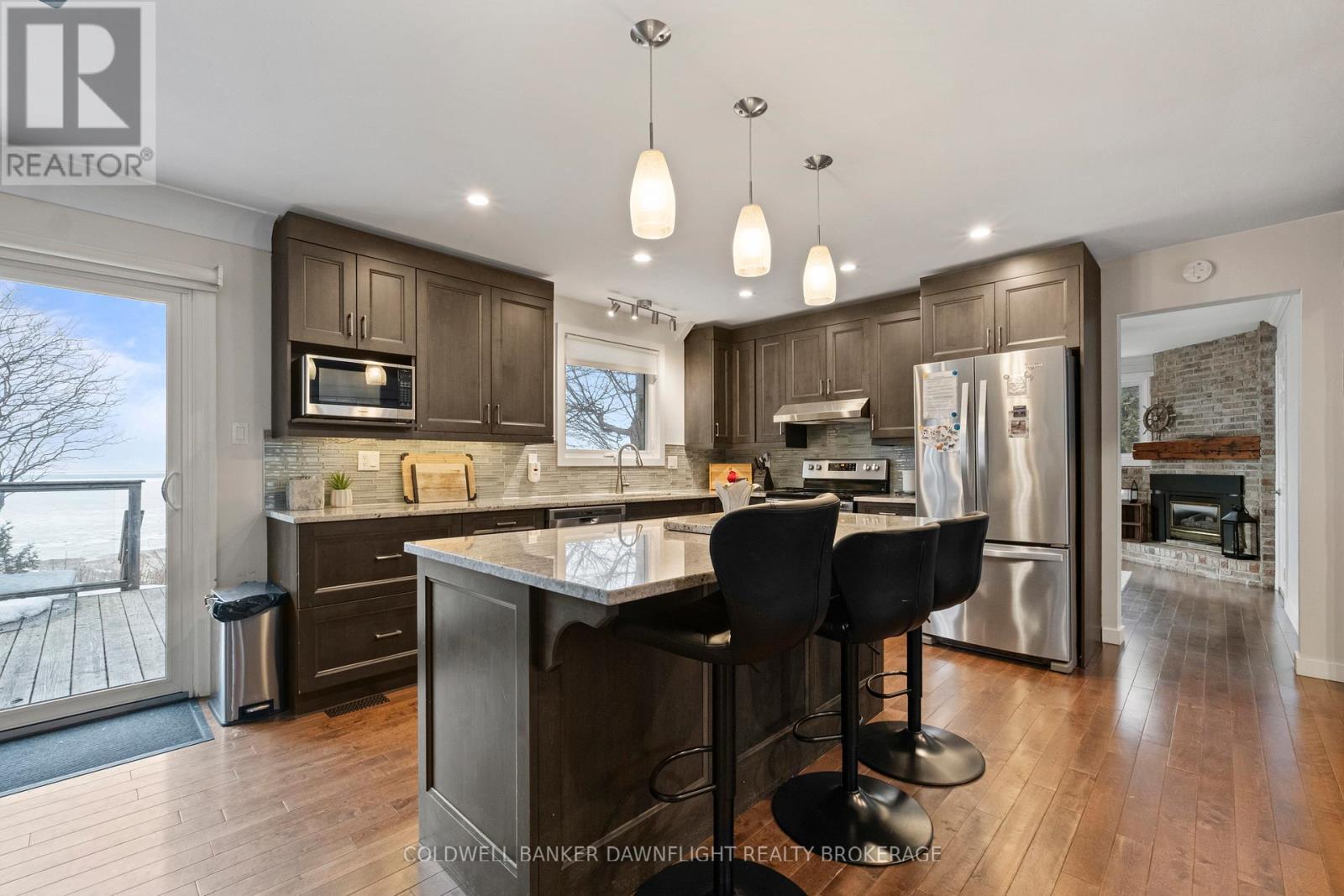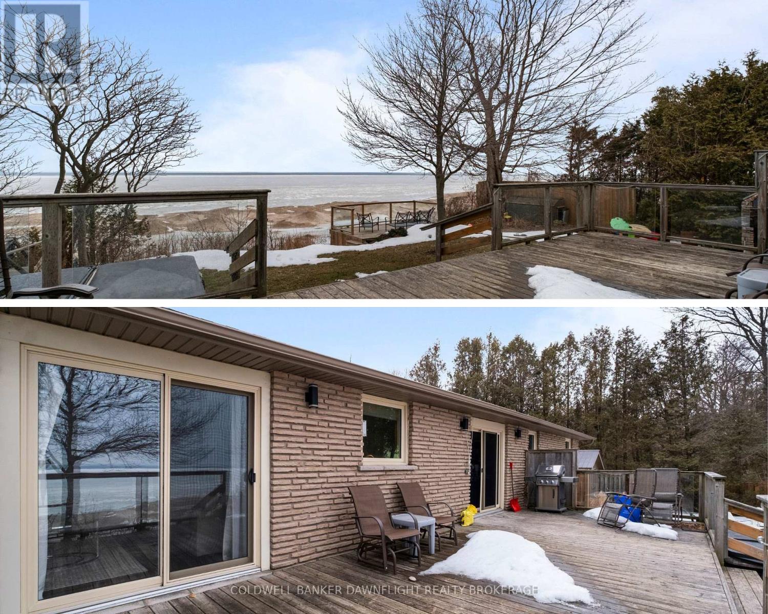 Tucked within a private lakefront enclave just minutes south of the historic village of Bayfield, this beautifully renovated three-bedroom bungalow offers turnkey living along the shores of Lake Huron. Fully refurbished on both the main and lower levels, the home showcases an open concept design that captures natural light and frames picturesque lake views. The principal living areas flow seamlessly, creating an inviting space for everyday living and effortless entertaining. A main floor den with a gas fireplace and sliding doors overlooking the water provides the perfect setting to relax and unwind. The updated kitchen blends modern finishes with functional design, while three refreshed bathrooms including a spacious, spa-inspired ensuite, offer comfort and privacy for family and guests. The fully finished lower level expands the living space with a generous family and games room, dedicated office area, and an additional private den, ensuring plenty of room for weekend visitors. Outside, the rear yard is designed for true lakefront enjoyment. A deck directly off the house offers the perfect spot for outdoor dining and relaxing while taking in the lake views. At the edge of the property, a second deck platform provides a peaceful vantage point overlooking the water, ideal for morning coffee or sunset evenings. Private stairs lead down to a charming sitting area at lake level, creating an inviting space to fully experience the shoreline. The property also features a hot tub, outdoor shower, and storage shed for all your outdoor essentials. Efficient gas heating and central air provide year-round comfort, and a double driveway with entrances from two streets offers ample parking. As a fully licensed Airbnb property with an established clientele, this home also presents an excellent opportunity to generate income while enjoying your own waterfront retreat. Move in and embrace refined lakefront living in one of the area's most sought-after communities. (id:4555)