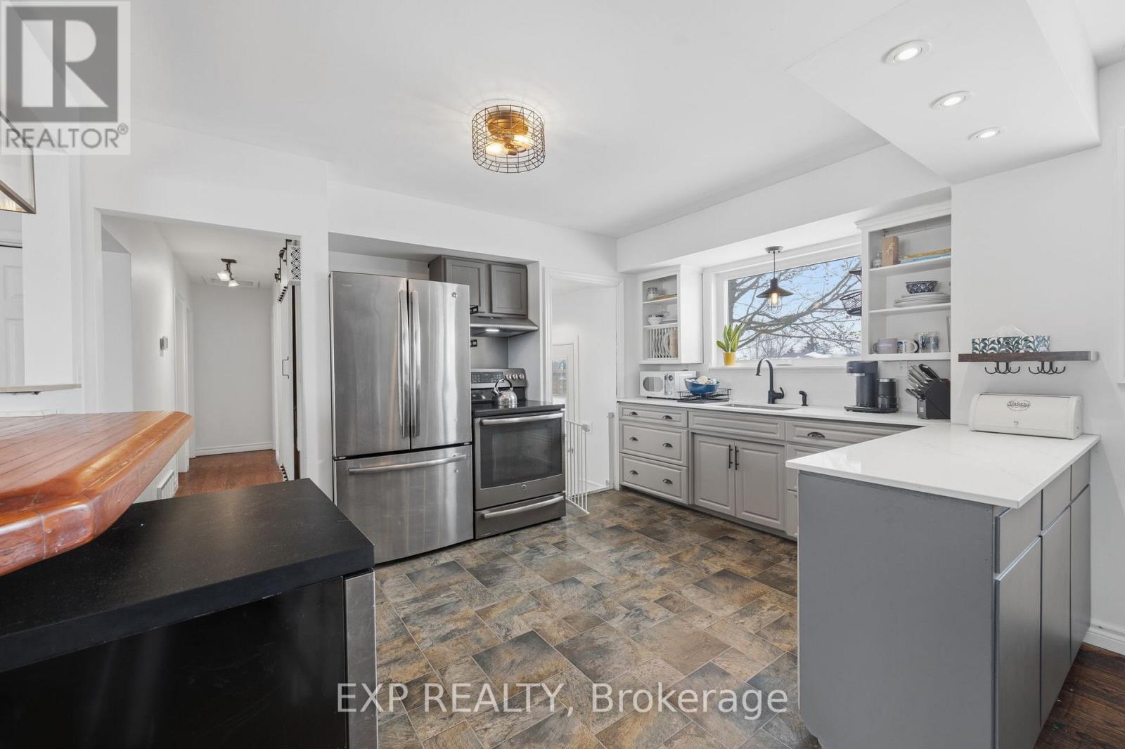 Originally built in 1964 this beautifully updated all-brick bungalow sits in the heart of Watford, ideally located directly across the street from the town's public school, East Lambton Community Complex, and Sports Field. An unbeatable location for families and anyone who values convenience and community living. This well-maintained home offers 3 bedrooms on the main floor and an additional bedroom in the fully finished lower level, along with a brand new modern 4-piece bathroom upstairs and a brand new 3-piece bathroom downstairs. The bright main level features hardwood flooring, updated windows (2025), and thoughtful upgrades that make this home move-in ready. The finished lower level was completed just one year ago, featuring luxury plank flooring, new carpet, and plenty of additional living space. A new sump pump adds peace of mind even though this home has no water issues. Major mechanical updates include a gas forced-air furnace (2015), updated ductwork, and central air conditioning (2015). The home also features a durable steel roof inspected last year, repaired eavestroughs, and a poured concrete foundation. The attached single-car garage features a brand new epoxy floor, new garage door, and automatic opener. Step outside to enjoy the large fully fenced backyard, complete with gates on both sides, mature trees including a beautiful weeping mulberry and maple, a newly built deck with gas hookup for BBQ, and a convenient garden shed. A charming fireplace with existing chimney offers the potential to restore a wood-burning feature if desired. This is a solid, thoughtfully updated home in one of Watford's most convenient locations. Perfect for anyone looking for comfortable small-town living directly across the street from the coolest amenities. (id:4555)
