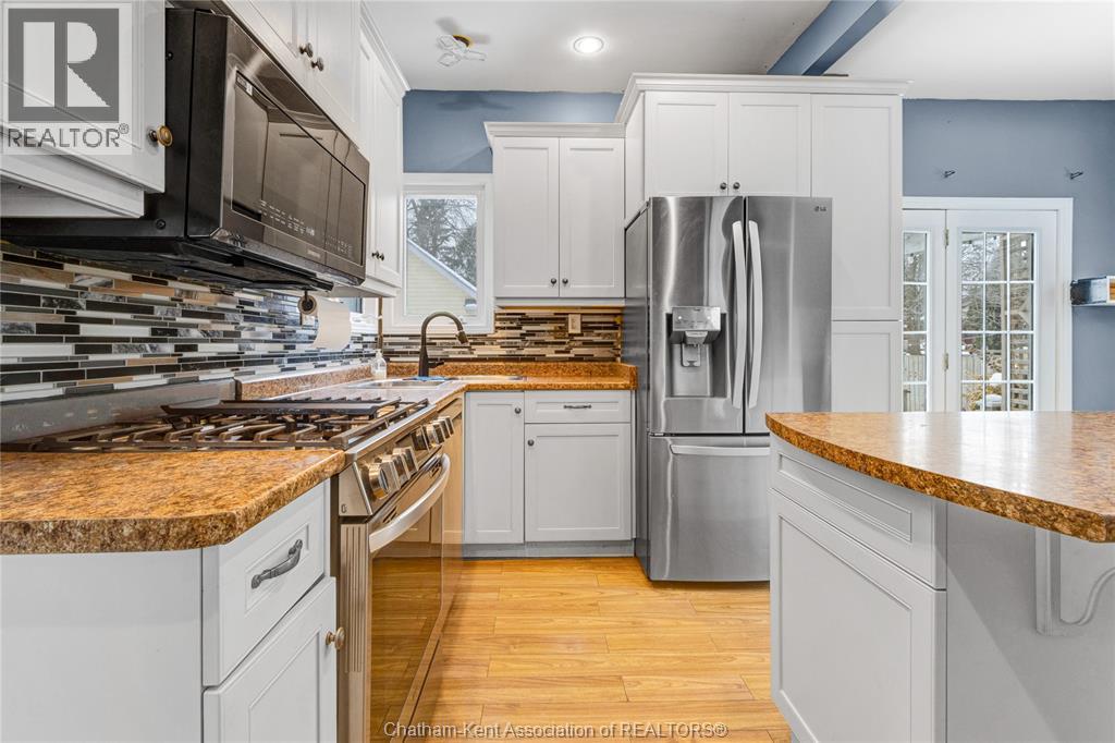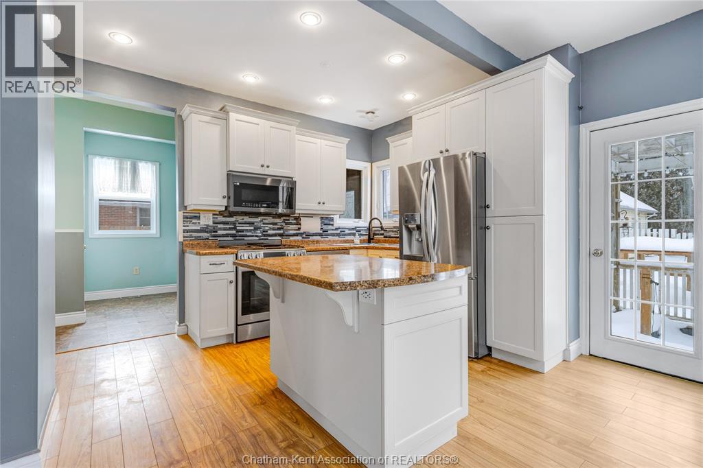Welcome to this charming 1 3/4 storey home in the heart of Blenheim, ideally located close to schools, parks, and everyday amenities, with the added convenience of a short drive to the 401 for easy commuting. Set on a large property, this home offers a covered front porch, a back patio perfect for entertaining, a storage shed, and plenty of parking, highlighted by a detached, heated two-car garage featuring in-floor heat and water and air hookups, making it an ideal space for hobbyists or those in need of a versatile workshop. Inside, the main floor features an open concept kitchen with a stylish backsplash and island, a spacious living room, and a dining area with patio doors leading to the backyard, along with the added convenience of main floor laundry and a 2-piece bath. Upstairs you’ll find three generously sized bedrooms, including a primary bedroom with a walk-in closet, and a 4-piece bathroom. The full unfinished basement features a newer foundation, is already framed, and offers excellent potential to finish to suit your needs. Call today! (id:4555)