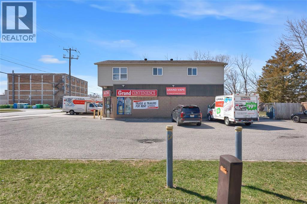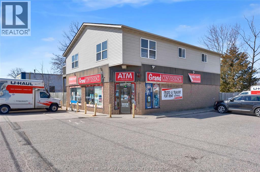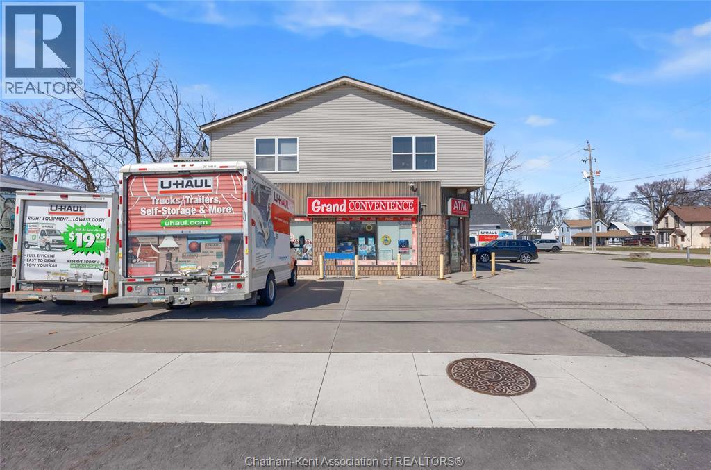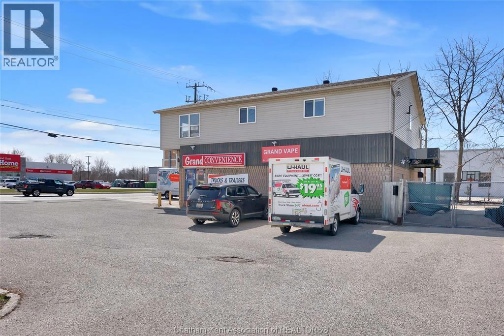 High traffic corner locations like this are hard to acquire in Chatham, especially with ample parking and high visibility. This purpose built retail store with residence above offers endless possibilities for a live/work arrangement or just multi-purpose investment. The main level is approx. 1900 sq ft and is operating as a leased variety store. Potential higher uses could be a restaurant, professional office, clinic among many others permitted in the zoning. The entire second level was built as a residence with three bedrooms, two bathrooms, laundry and large open concept living and kitchen area. The paved parking lot provides approx. 12 parking spots in the front with additional parking in the rear for staff/residence. Convenience store tenant occupies entire building. Take a serious look at this location with many recent multi-million dollar retail improvements around it. Traffic lights are currently being installed at this intersection, potentially increasing the visibility even more. (id:4555)