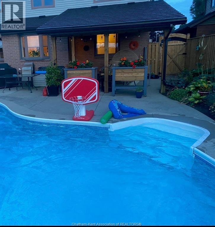 Welcome to this meticulously maintained and thoughtfully renovated two-storey home, a perfect blend of comfort, style, and functionality for modern family living. The main level features a bright and inviting layout with a spacious living room, formal dining area, and a cozy family room—ideal for both everyday living and entertaining. The eat-in kitchen with granite countertops, a tiled backsplash, and direct access to the rear yard, making indoor-outdoor hosting effortless. A convenient main floor laundry room and welcoming foyer with a stunning hardwood staircase complete. Upstairs, you’ll find 3 generously sized bedrooms, including a large primary suite with a walk-in closet and private 3pc ensuite. A well-appointed 4pc bath serves the additional bedrooms.The fully finished lower level is designed for relaxation and entertainment, featuring a custom-built bar, comfortable family room, and a dedicated movie-night setup with a big-screen TV and surround sound included. Additional updates and features include updated HVAC, a durable metal roof with a lifetime transferrable warranty, and meticulous upkeep throughout. Step outside to your private backyard retreat—fully fenced and beautifully landscaped, complete with an in-ground swimming pool and a covered patio area perfect for those who prefer to relax in the shade. Elegant wrought iron fencing along the rear allows you to take in stunning sunset views, creating a truly special outdoor setting. Situated in a sought-after, family-friendly neighbourhood, this home is conveniently located close to excellent schools, parks, and all amenities. (id:4555)