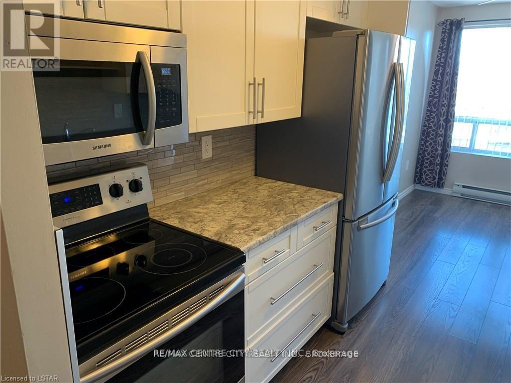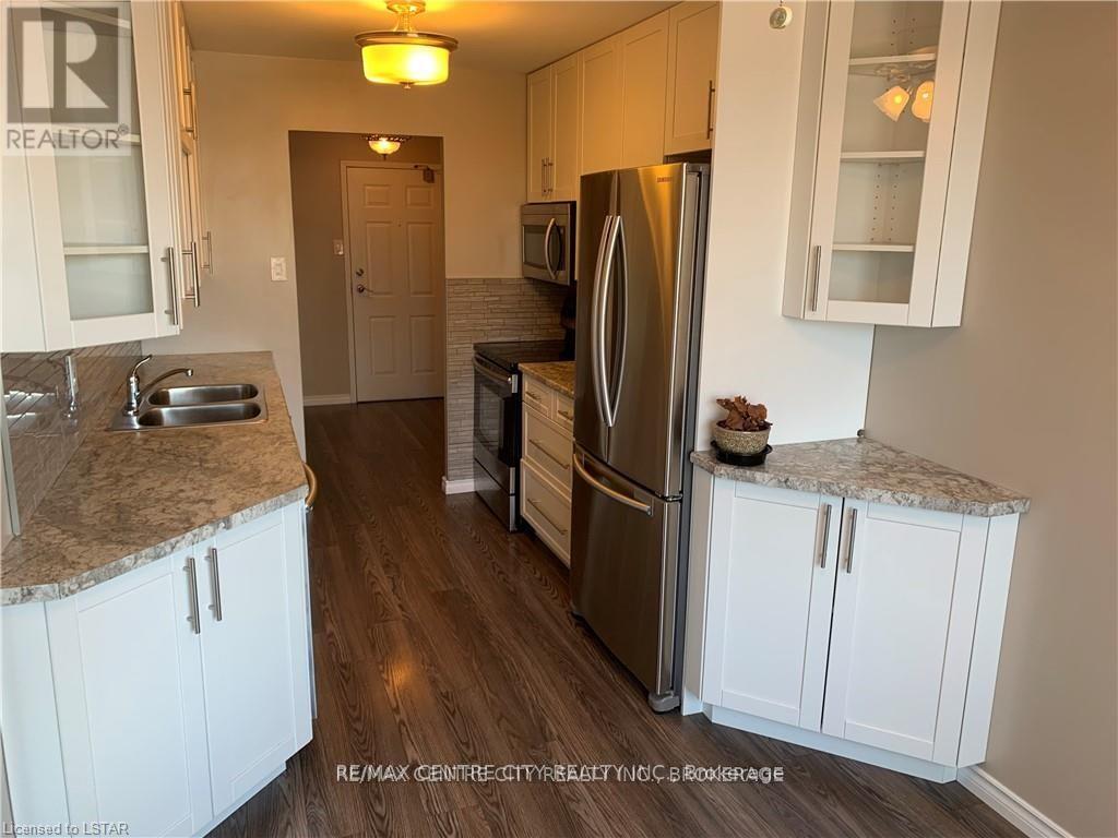 Don't miss!!! Stunning 2 bedroom + 2 bathroom unit with balcony! Professionally installed beautiful flooring with quiet underlay. Updated baseboards throughout, updated kitchen cupboards, counters, backsplash. Every light fixture has been updated, door handles & light switches. All kitchen appliances are newer- fridge, stove (self-clean), microwave, dishwasher & stackable Maytag washer & dryer. The bathrooms are filled with beautiful updates. All measurements approximate. $1800 per month plus hydro (water included). Available for June 1 move in. Photos prior to current tenant. (id:4555)