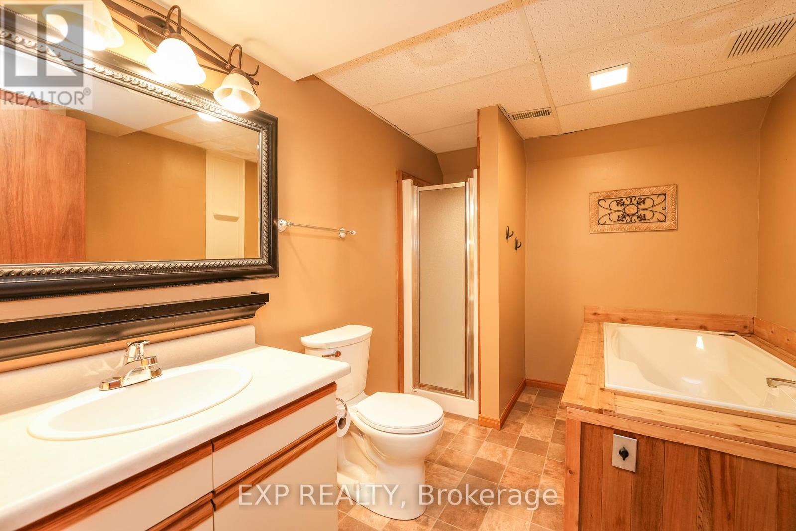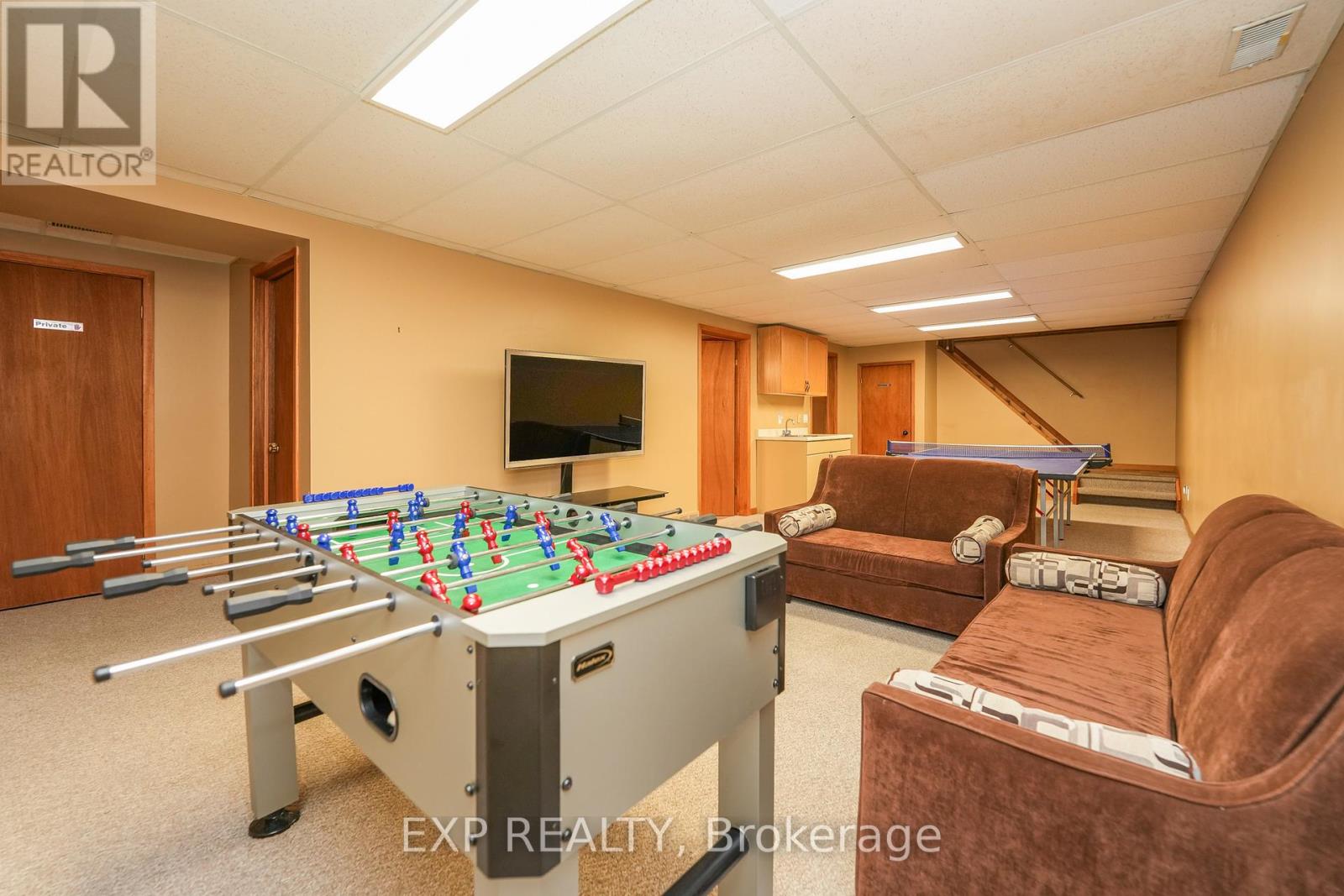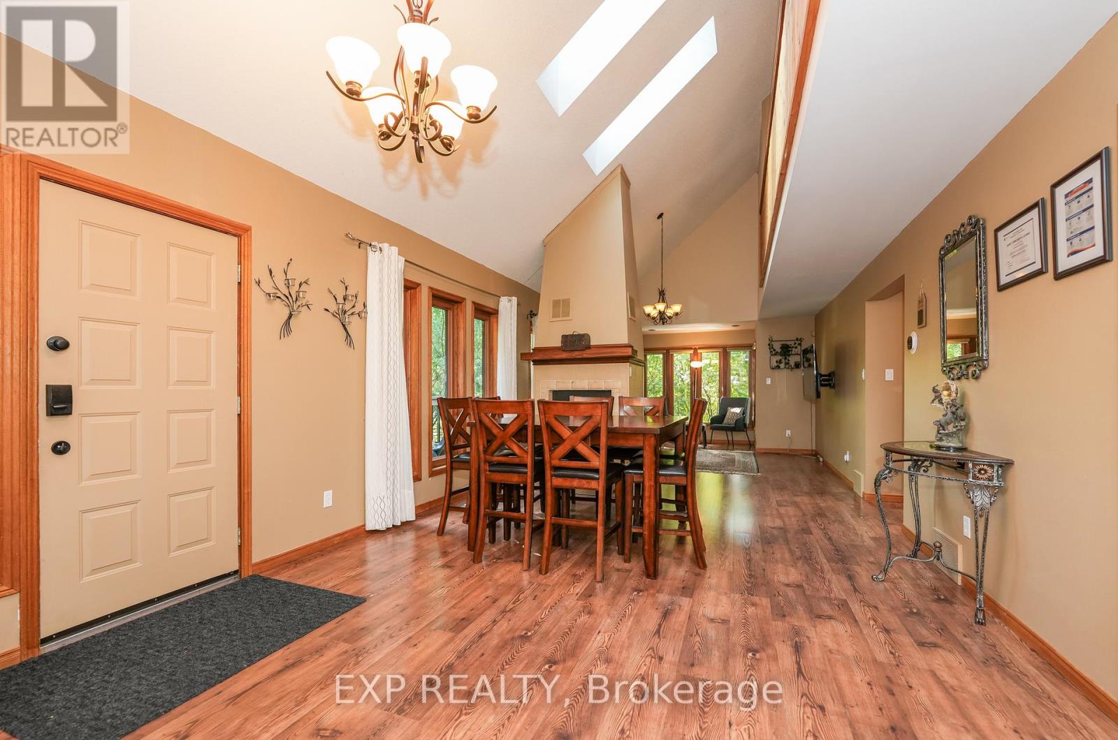 A GREAT OPPORTUNITY TO ACCESS ALL THE AMENITIES HURON WOODS HAS TO OFFER! With deeded beach access to a stretch of stunning Lake Huron beach, a prime location backing onto Pinery Provincial Park, and plenty of room for family and friends, this beautiful home or cottage offers the ultimate lakeside lifestyle. Don't miss your chance to own this incredible property in one of the areas most desirable neighborhoods! Step inside to an inviting, open-concept great room with soaring two-story vaulted ceilings, a cozy wood-burning fireplace and an abundance of natural light that fills the living space. The location of the spacious kitchen offers easy access to the dining area and side yard, perfect for entertaining. The main floor also includes a comfortable bedroom with a cheater two-piece bathroom, ideal for guests. Upstairs, you'll find three additional spacious bedrooms and a full bathroom, providing ample space for the whole family. The finished lower level offers even more living space, with a walkout to the rear yard from the large recreation room area that includes a wet bar, workout room or office space, and a full custom bathroom. A screened-in patio at the side of the house is perfect for relaxing or dining while you take in the peaceful view of the woods. The large .75 acre treed lot has tons of potential for further development if desired. Huron Woods has so much more to offer, including access to an incredible clubhouse, tennis / pickleball courts, playground and canoe storage along the Old Ausable River Channel. This is more than just a home or cottage; it's an invitation to experience the unparalleled beauty and recreational opportunities that Huron Woods and Pinery Provincial Park have to offer. Shopping, restaurants, marinas, golf courses, wineries, breweries and more are all just a short drive away. (id:4555)