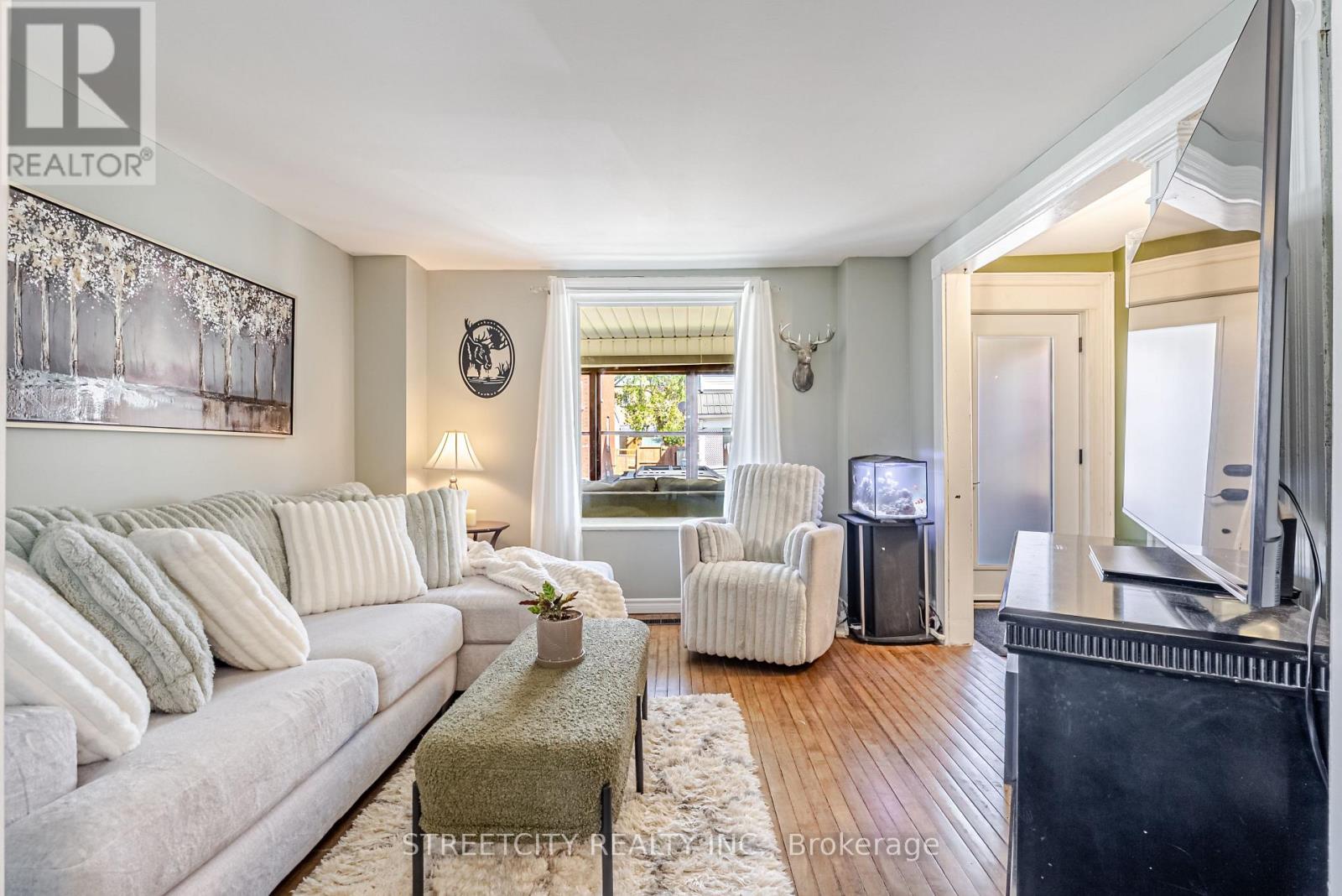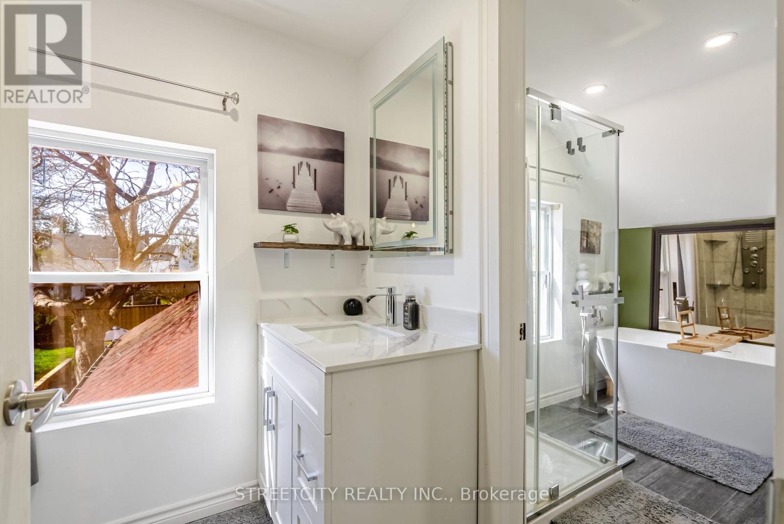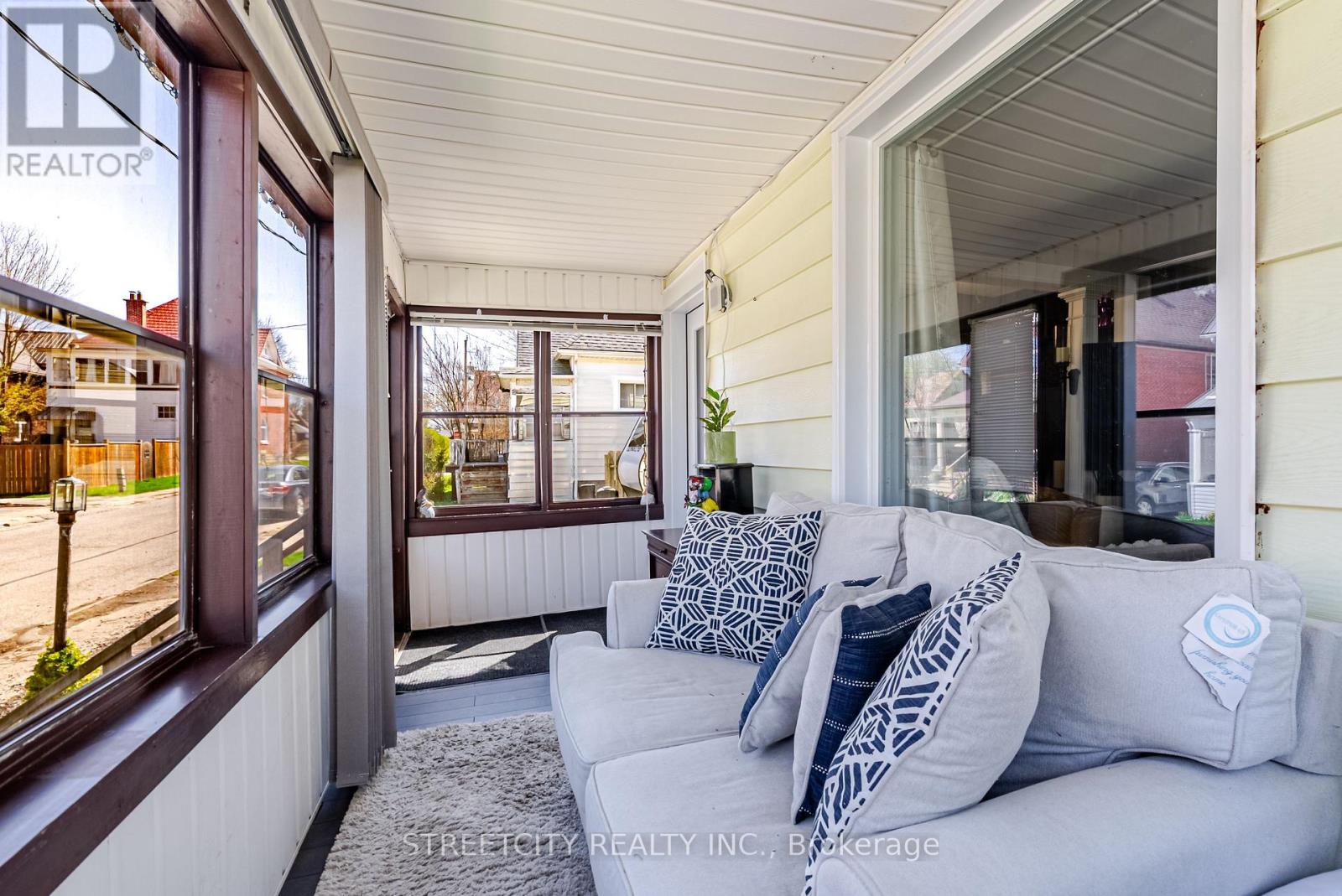 Located just minutes from downtown St. Thomas, this updated detached two-bedroom home blends character, thoughtful updates, and practical living throughout, beginning with the enclosed front porch that adds additional usable living area and a welcoming entry. The main level features a spacious living and dining area with restored original flooring and a natural transition into the large eat-in kitchen, complete with granite countertops, white cabinetry, stainless steel appliances, a centre island, and direct access to the backyard and rear deck, ideal for outdoor dining and entertaining. Upstairs includes two comfortable bedrooms and a beautifully renovated bathroom with a freestanding soaker tub, separate walk-in glass shower, and a walk-through closet that adds excellent storage and organization. The lower level adds versatility with a den, second bathroom, and additional storage space. Outside, the property offers a good-sized yard, storage shed, and private double driveway with parking for multiple vehicles, all set in a convenient location close to all amenities. (id:4555)