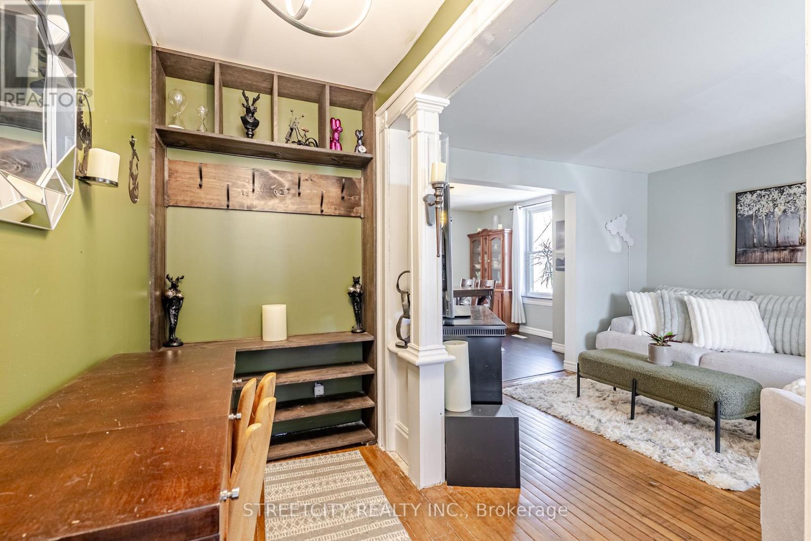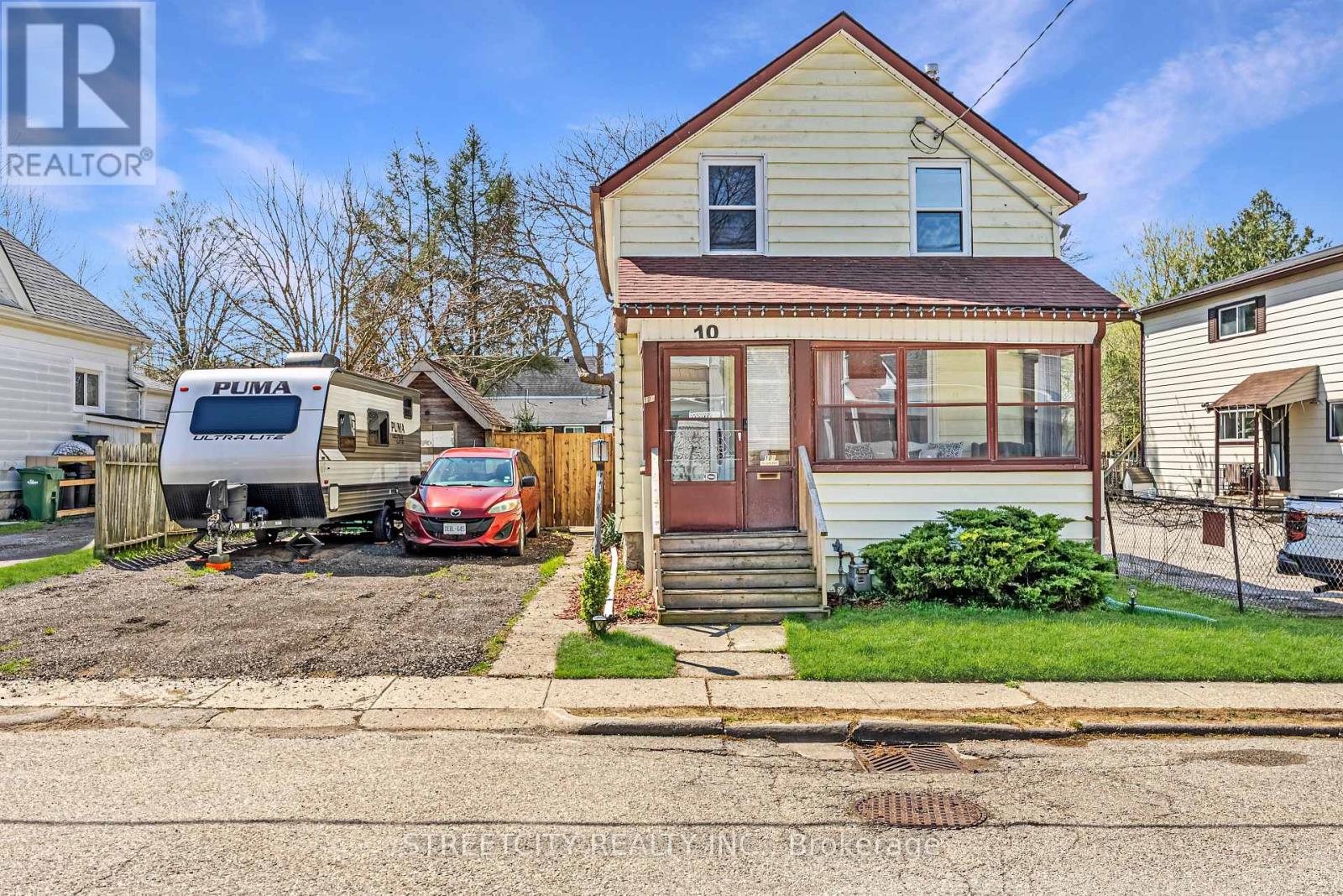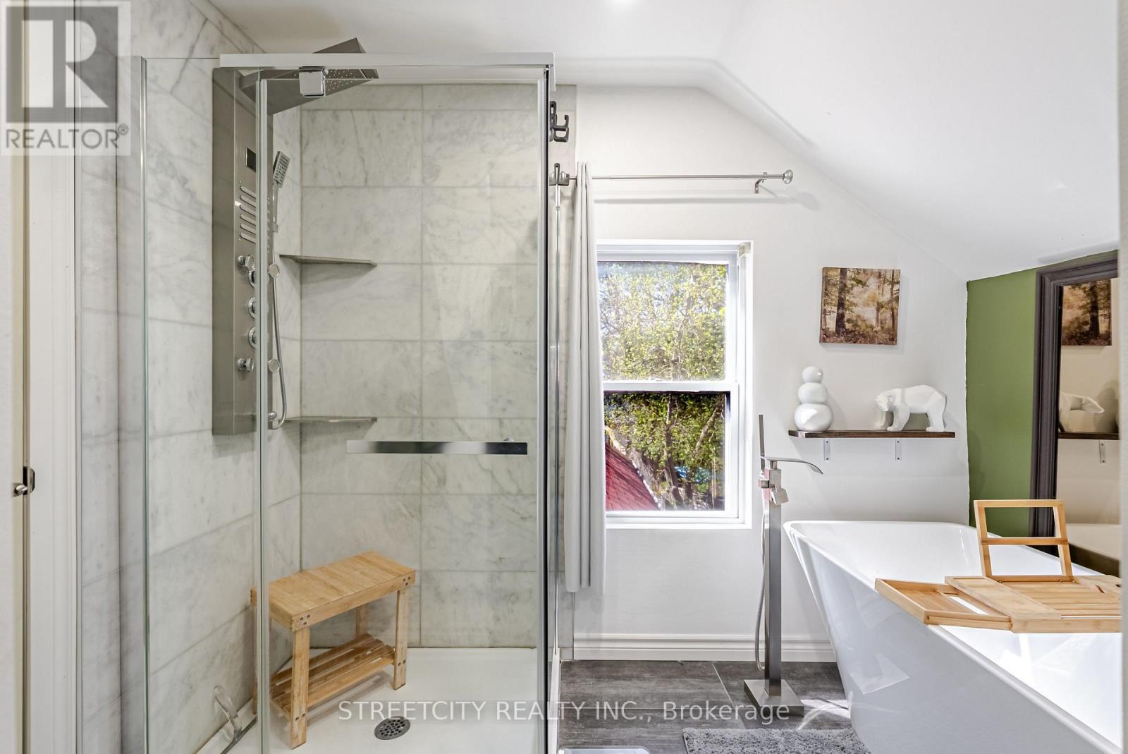 Located just minutes from downtown St. Thomas, this updated detached two-bedroom home blends character, thoughtful updates, and practical living throughout, beginning with the enclosed front porch that adds additional usable living area and a welcoming entry. The main level features a spacious living and dining area with restored original flooring and a natural transition into the large eat-in kitchen, complete with granite countertops, white cabinetry, stainless steel appliances, a centre island, and direct access to the backyard and rear deck, ideal for outdoor dining and entertaining. Upstairs includes two comfortable bedrooms and a beautifully renovated bathroom with a freestanding soaker tub, separate walk-in glass shower, and a walk-through closet that adds excellent storage and organization. The lower level adds versatility with a den, second bathroom, and additional storage space. Outside, the property offers a good-sized yard, storage shed, and private double driveway with parking for multiple vehicles, all set in a convenient location close to all amenities. (id:4555)